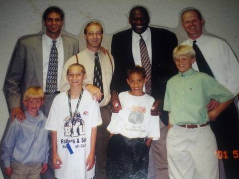 From left to right on the back row is Andy Toolson, unknown, Chatman and Marty Haws. In front row from left to right is TJ Haws, unknown, Jordan Chatman (signed with BYU last year and currently serving LDS mission in Taiwan) and Tyler Haws, who is clearly a foot and a half taller than his brother. Case closed.