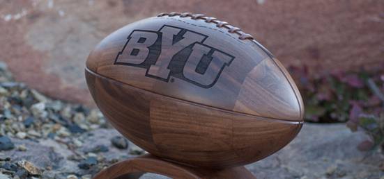 Memories in Mahogany and other Heirloom Woods 2013 should be a very memorable season for BYU Football. What a better way to preserve those potential memories than with a commemorative BYU regulation size solid heirloom wood football artistically and artfully laser engraved with BYU logos. Only $119.95 FEATURES * Solid Wood - walnut, cherry, maple and santos mahogany * Handmade by craftsmen from heirloom quality hardwoods * Official Regulation Size * Laser Engraved Logos * Includes decorative wood stand for table or desk display * Officially NCAA Licensed Arnett Approved <http://www.youtube.com/watch?v=ekCuDmsPq4k&feature=youtu.be> Click on photo of HB above to see video Order Now! Buy one for yourself, family member or any BYU football fan. They make a perfect gift that will be remembered for a lifetime. Click Here <http://www.cougarclicks.com/product/Order-Wood-Balls?ID=3174> to Order Or you can send a check or order by phone and email: Cougar Sportsline 1391 W 800 S Orem, UT 84058 801 372 0819 hbarnett@fiber.net