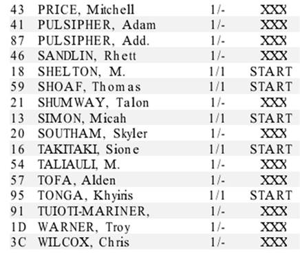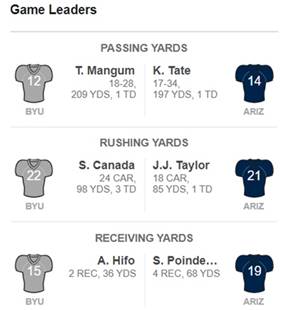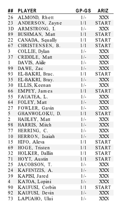 HB Arnett's "Lite" hbarnett@fiber.net <mailto:hbarnett@fiber.net> 801 372 0819 Vol. 38, Issue 6, September 3, 2018 Some subscribers say the player participation chart was unreadable. Here it is again. Hopefully this will work. What I Loved About the Season Opener The best part of the game that I loved, besides the win, was the stat sheet. No, not the stats that shows how many pass completions there were or how many yards Squally Canada had (98). Those were nice, but the best part of the official stat chart is who played for BYU in the game. Below is the player participation chart for the Arizona game. Now go to the BYU roster and check on what eligibility year most of these guys are. I'll save you the work. Besides the solid game by Tanner Mangum, the running of Squally Canada and the defensive game plan by Ilaisa Tuiaki, the most exciting thing about this game was seeing just how many young contributing players in this game there really were. The present win over Arizona was great, but the future looks greater for 2019 and beyond. For example. Brady Christensen OL, RS Freshman James Empey, OL, RS Freshman Tristen Hoge, OL, RS Sophomore Matt Bushman, TE, Sophomore (touchdown catch) Isaiah Herron, CB, Freshman Dallin Holker, TE, Freshman (almost touchdown catch) Jared Kapisi, DB, Sophomore Lopini Katoa, RB, RS Freshman Lorenzo Fauatea, DL, Sophomore Khyris Tonga, DL, Sophomore Alden Tofa, DL, Freshman D'Angelo Mandell, CB, Freshman Malik Moore, CB, Freshman Skyler Southam, PK, Freshman Alden Tofa, DL, Freshman They didn't see the field, but just a friendly reminder that both true freshmen quarterbacks, Zach Wilson and Jaren Hall were both dressed and ready to go if needed. They will be needed next year and maybe this year if Mangum doesn't stay healthy. Just an unfriendly reminder, that young linebackers seeing the field against Arizona were few and very far between. BYU needs linebackers to get ready to replace the current senior crew of Takitaki, Pau'u and Anderson. Just an observation. This new Jeff Grimes designed offense is a perfect fit for BYU's talent and current roster. They are big and strong and can control the line of scrimmage. Still, can you imagine how much better this offense would be if they had a game changer at running back and wide receiver? Canada was great, but he had at several opportunities running in space to take the ball to the house but doesn't have game changer speed or athleticism. Same goes for receivers. This is a journeyman group but lacks a game breaker. The closest it comes is Aleva Hifo. That said, both Canada and Hifo received glowing reviews from me for their play against Arizona.