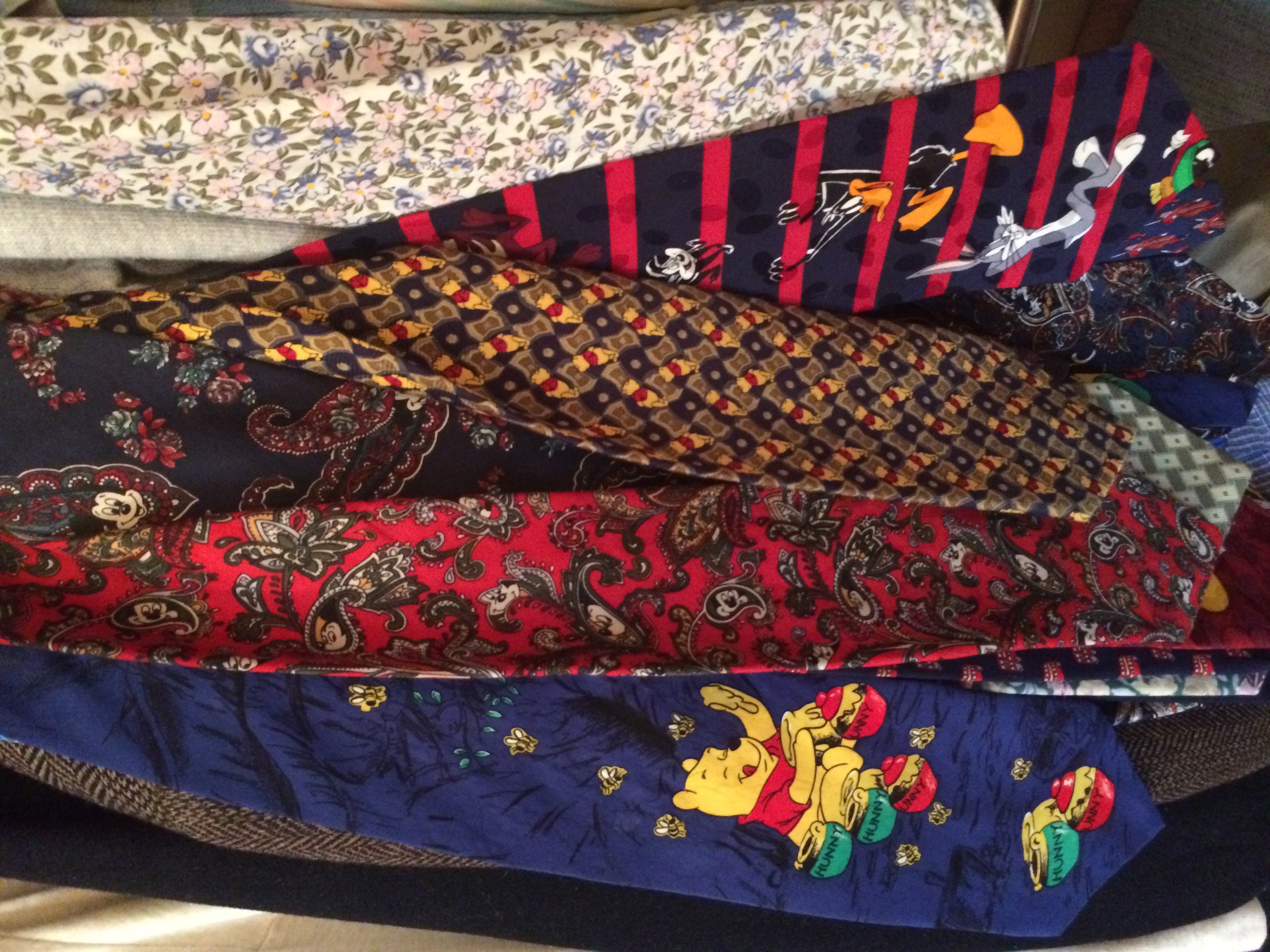 Please pass word to your boys. I'll set them out at 168 for choosing & keeping. "If you've got to wear a noose, it may as well be a fun one" Paul, would your boys want? Blaine, I'm setting aside the England ties for you. On Thu, Jun 1, 2017 at 5:18 PM Ann Fouts <ann.fouts@gmail.com> wrote: