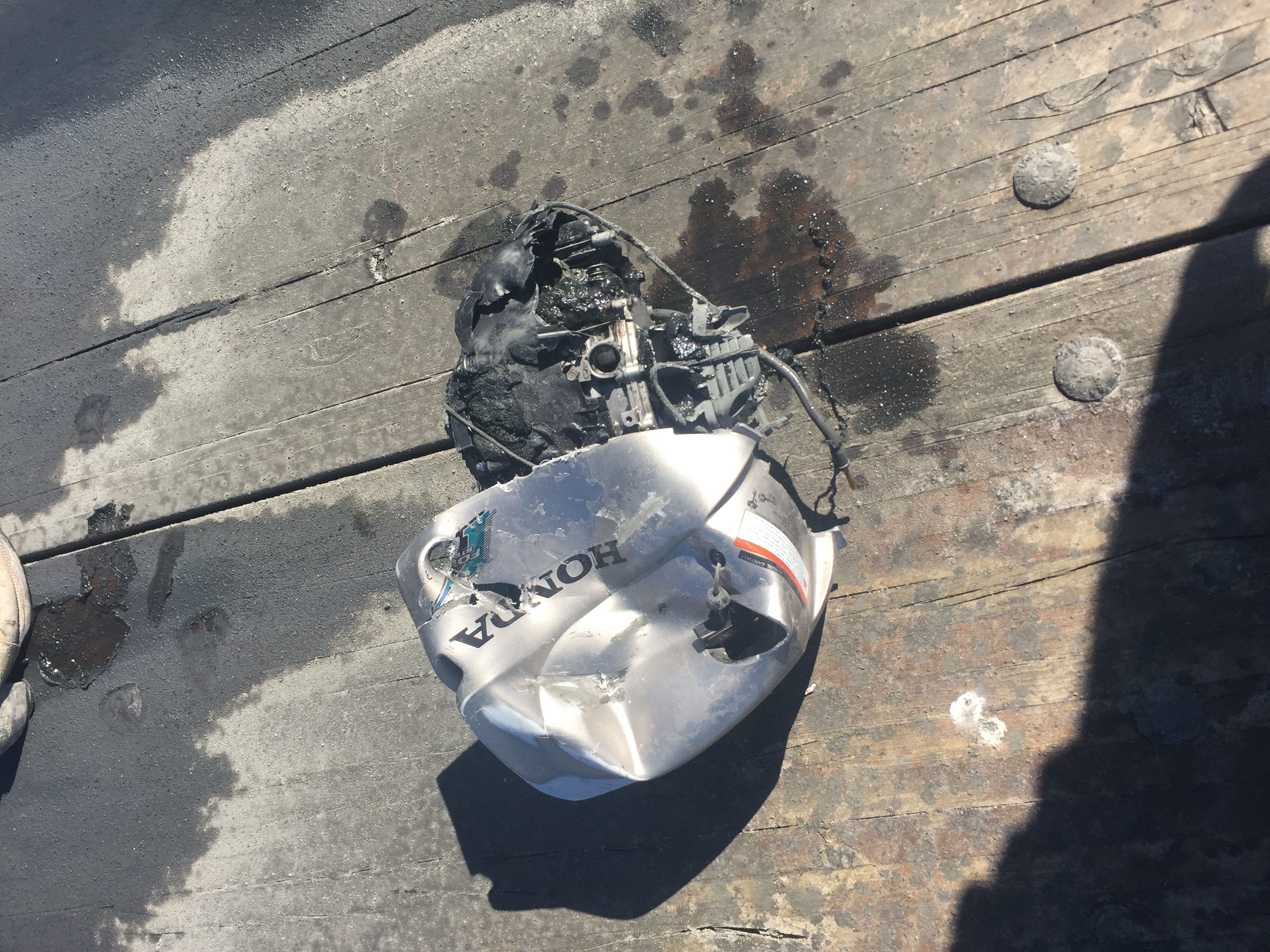Is anyone missing a Honda Four Stroke outboard motor? The dredgers found it today. Picture is attached so the lucky owner can identify it.