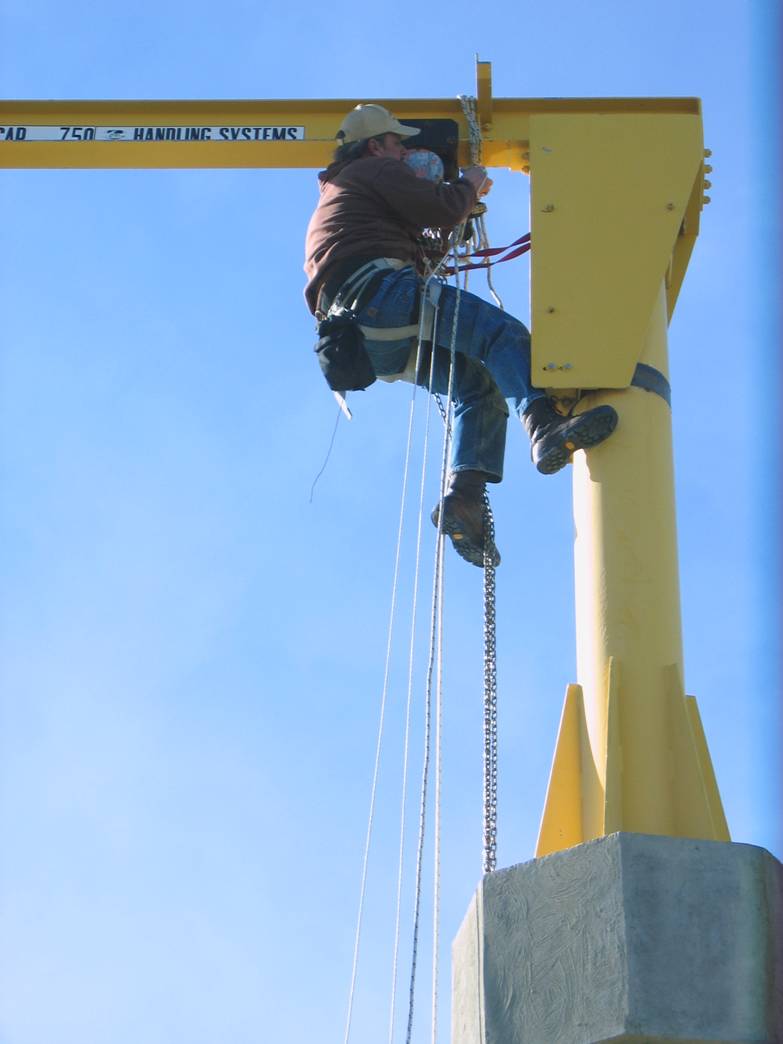 GSL Slip Renters, Unfortunately the mast hoist is not going to be a quick fix. Four years of salt corrosion has placed a toll on the gear mechanism. We will remove the hoist and have it serviced over the next few weeks. BUT . . . in the meantime we have rigged up a temporary hoist system from the Jib Crane so that you can still raise and lower your masts. For safety, (and to protect my personal equipment) the system has been locked up. All you need to do, in order to utilize the hoist, is to either call or email me and make arrangements. We will accommodate you the best we can. Thanks for your understanding Harbormaster Mast Hoist 007.JPG