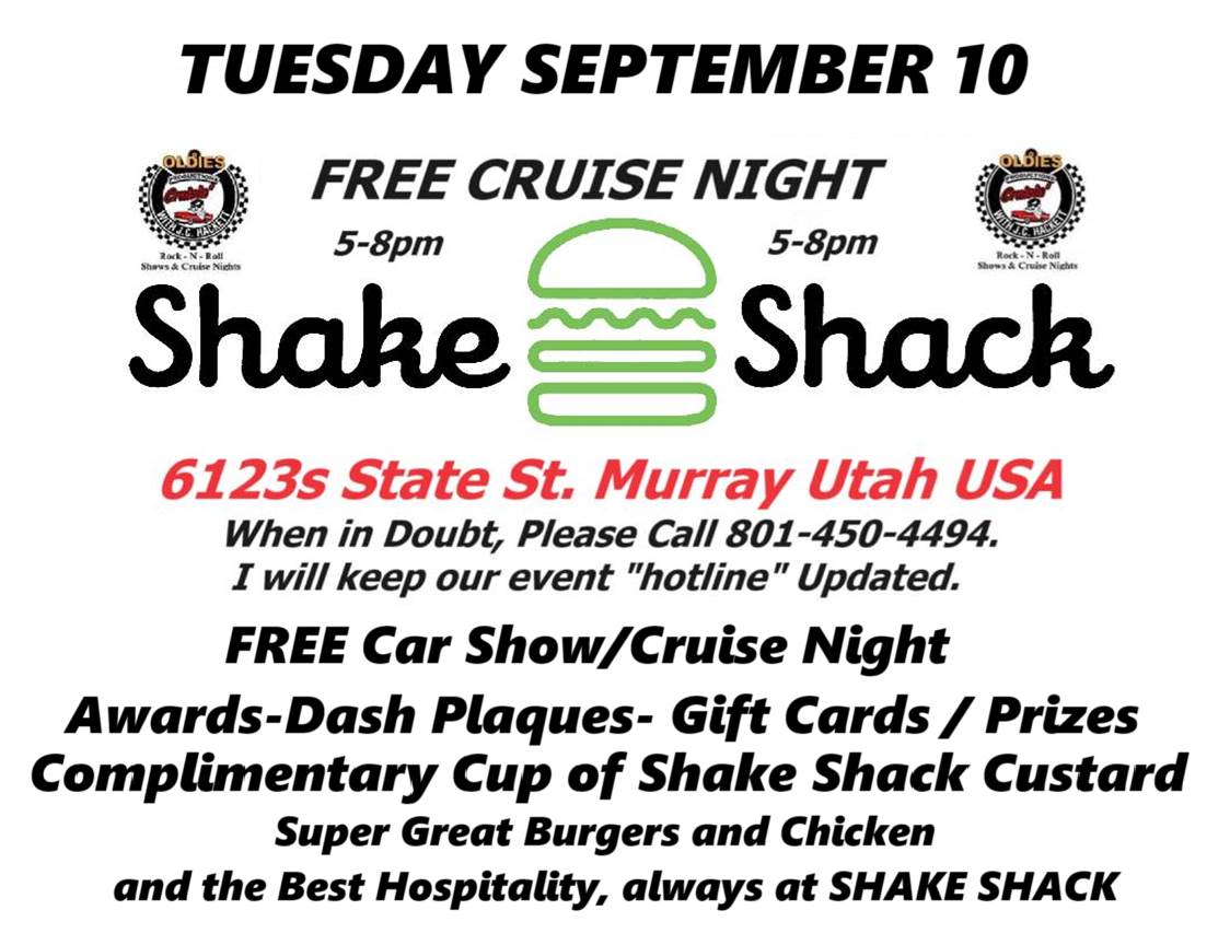 We are asking you for a favor, PLEASE observe a few simple rules.. 1st and foremost is you attend to have FUN! Be courteous to those attending, respect "Reservation" chairs and cones, it's just friends reserving a spot and waiting for a friend.. We realize space is a premium and those reserving will always pull once they receive word someone is not coming. Our "Family of Friends" grows every year, just as each of our own families has grown. Wow where did all the years go? Cherish each day, and each friend, tell those special to you, YOU LOVE THEM. We never know when that time, .. may be the last time. NEWS FLASH., We NEVER select award winners! .ITS NOT OUR JOB! That honor is always left up to the award host. We generally have a few door prizes to give away,, The difference in door prizes and raffles are,, you BUY raffle tickets ! Door prizes are FREE upon event registration, compliments of the event sponsor. Check our website <http://www.jchackett.com> www.jchackett.com for MORE. BRING IT ON.. Please feel free to email us for anything. <mailto:jc@jchackett.com> jc@jchackett.com is one of our email addresses, the other is <mailto:hackett56@comcast.net> hackett56@comcast.net Oh, Wait.. There is MORE !! New events/Information added Here's a little list of 2024 events we have scheduled.. Make a plan to join in.. Anytime you can, Check our Website for just a few more. www.jchackett.com <http://www.jchackett.com/> SEP 10, TUE MURRAY, Shake Shack FREE Cruise Night, 6123s State St. 801-448-7907 Sep 11, Wed CANCELLED West Valley City, HIRES Drive-in, 2900w 4700s 801-965-1010 Sep 18, Wed West Valley City, Valley Fair Mall Cruise Night.. 3601s 2700w, East Side Sep 19, Thu South Jordan, Live Daybreak, SODA ROW Cruise Night, 11258s Kestral Rise Road, (11300s4700w) Sept 20 FRIDAY 11a-2p CARQUEST PRICE UTAH 720e Main t 435-637-5190 Sep 21, Saturday 11a - 2p CARQUEST, Mt Pleasant Utah 180w Main St 435-462-2605 Sep 24, Tue DRAPER, Garage Grill Cruise Night, 1122e 12300s 801-523-3339 Sep 25, Wed LAYTON, Burger Stop Cruise Night, 323e Gentile Rd. 901-544-8090 27 Sep 27, Friday Mt. Carmel FREE Welcome Party Cruise Night Sep 28, Saturday Carmel Mountain Car Show 801-358-4656 Setting on the Beautiful Golf Course. Thunderbird Resort, Mt. Carmel Junction East Side of Zion National Park, Utah Oct 1, Tue LEHI, One Man Band Cruise Night, 1220e Main, 801-766-0552 Oct 2, Wed West Jordan, Jordan Landing Cruise Night, 3751w 70th s, Oct 5, Sat COPPERTON, Kulture Krash Kar Show, Copperton City Park, 801-360-8922 Oct 8, Tue MURRAY, Shake Shack Cruise Night, 6123s State St. 801-448-7907 Oct 9, Wed CANCELLED West Valley City, HIRES Drive-in, 2900w 4700s 801-965-1010 Oct 12, Sat open Oct 14, Mon All day Columbus Day Oct 16, Wed West Valley City, Valley Fair Mall Cruise Night.. 3601s 2700w, East Side Oct 17, Thu South Jordan, Live Daybreak, SODA ROW Cruise Night, 11258s Kestral Rise Road, (11300s4700w) Oct 19 , Sat Open Oct 22, Tue DRAPER, Garage Grill Cruise Night, 1122e 12300s 801-523-3339 **** Please do NOT "hit reply" to this email, **** It goes to a mailing service If you would like to email us,, our address is <mailto:jc@jchackett.com> jc@jchackett.com If you know of anyone who would like to receive "Cruise Event Related" information, Simply have them shoot us an email.. They will be added to our mailing list, As you see, it is "blind copied" so others will not get your address.. Please feel free to pass this along to your friends. A Most Important rule to follow.. BE NICE, Think of others, Give someone, GIVE ANYONE a SMILE.. You would be so surprised how it will make YOU feel! CHECK OUR WEBSITE FOR MORE 2024 EVENTS J.C Hackett Oldies "Rock & Roll Radio" Productions Real Oldies, KCPX P.O Box 271226 Salt Lake City, Utah 84127 Website <http://www.jchackett.com> www.jchackett.com Email us at jc@jchackett.com <mailto:jc@jchackett.com> J.C Hackett Oldies "Rock & Roll Radio" P.O Box 271226 Salt Lake City, Utah 84127 www.jchackett.com <http://www.jchackett.com> 801-450-4494