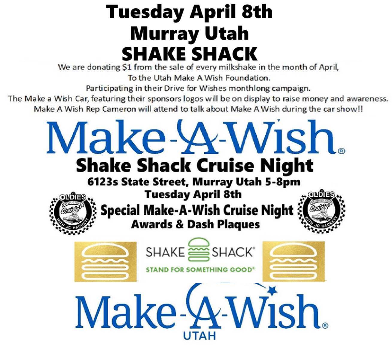 SHAKE SHACK & MAKE A WISH Tuesday April 8th - FREE Cruise Night, **