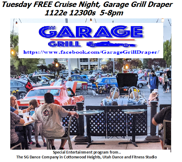 Tuesday April 26th FREE Draper Garage Grill Cruise Night