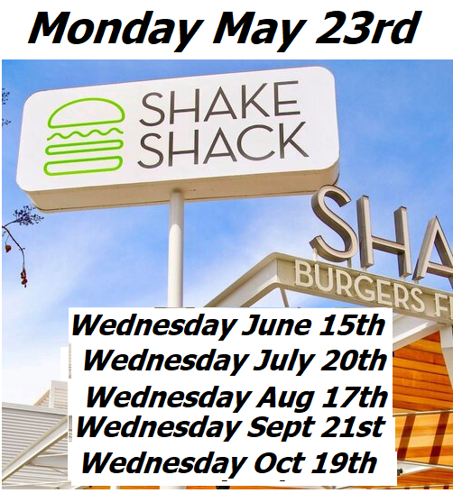 SHAKE SHACK -- Monday May 23rd (one month only)