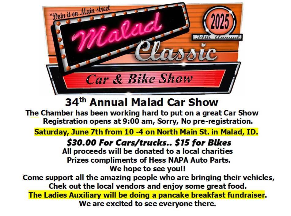 SATURDAY, 34th Annual MALAD Car/Truck/Bike Show **