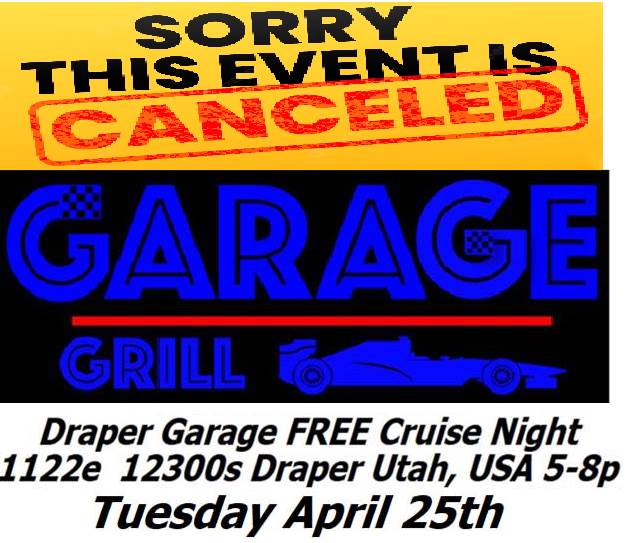 Our sincere apologies. MOTHER NATURE WINS AGAIN Tonight's event at Garage Grill has been CANCELED. Please help us pass the 'WET' word along THANK YOU. See our website for more events.. <http://www.jchackett.com> www.jchackett.com ***** Future Events 26 APR, WED 5-8p Layton BURGERSTOP Free Cruise Night, 5/8 323e Gentile St 801-544-8090 27 APR, THU 5-8p West Valley City, Valley Fair Mall FREE Cruise Night, 3662s 2400w (East Side by Springhill Suites) 28 APR, FRI 4-7p MOAB Free CARQUEST Cruise Night, 1010s Main St. 435-259-2413 29 APR, SAT 9a 3p MOAB Car Show, Swanny Park, Moab Utah 100w 400n 435-260-1948 2 MAY 5-7 LEHI One Man Band FREE Cruise Night 1220e Main St 801-766-0552 3 MAY 5-7p West Jordan Jordan Landing FREE Cruise Night 3751w 70th South 5 MAY 3-7p PAGE ARIZONA Welcome/Registration Cruise Night PARTY 665s Lake Powell Blvd. 928-691-0042 5 MAY 8-3p PAGE ARIZONA CAR SHOW Page City Park 600n Navajo St 928-691-0042 10 MAY 5-7P WEST VALLEY CITY HIRES FREE CRUISE NIGHT 2900W 4700S 801-965-1010 13 MAY 8-3P Heber City CARQUEST FREE CAR SHOW 434n Main St 435-654-1520 **** Please do NOT "hit reply" to this email, **** It goes to a mailing service If you would like to email us,, our address is <mailto:jc@jchackett.com> jc@jchackett.com If you know of anyone who would like to receive "Cruise Event Related" information, Simply have them shoot us an email.. They will be added to our mailing list, As you see, it is "blind copied" so others will not get your address.. Please feel free to pass this along to your friends. A Most Important rule to follow.. BE NICE, Think of others, Give someone, ANYONE a SMILE.. You would be so surprised how it will make YOU feel! J.C Hackett Oldies "Rock & Roll Radio" Productions Real Oldies, KCPX Salt Lake City, Utah 84127 <http://www.jchackett.com/> www.jchackett.com Email <mailto:jc@jchackett.com> jc@jchackett.com