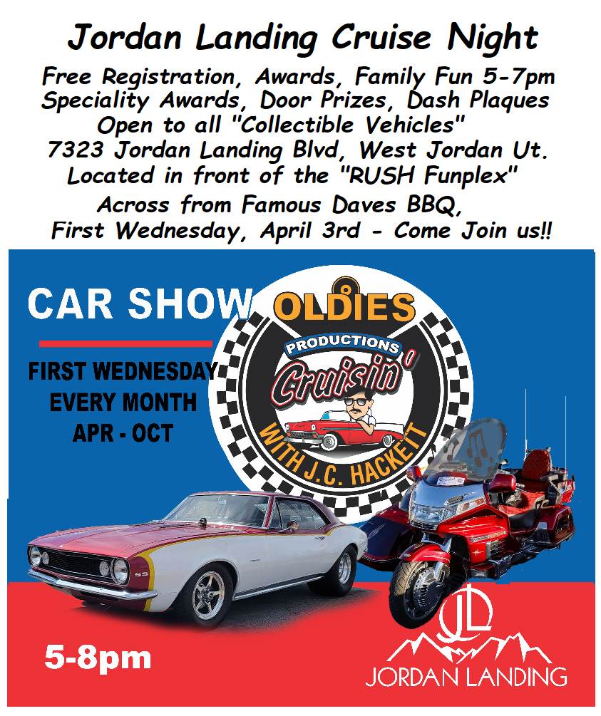 Tonight- April 3rd. JORDAN LANDING FREE CRUISE NIGHT CAR SHOW