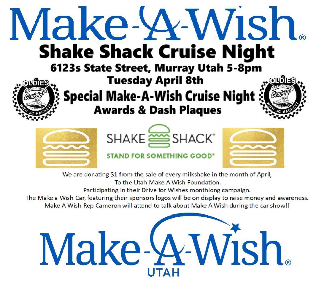 SHAKE SHACK & MAKE A WISH Cruise Night, Tuesday April 8th