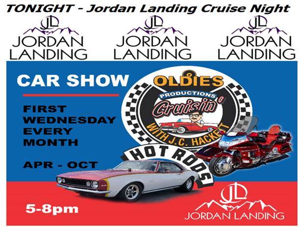 Wednesday SEPTEMBER 4th .. FREE Cruise Night 5-8p 3751w 7273s (Plaza Center Drive) Free Registration to any and all makes of "collectible" cars - trucks and Motorcycles, Door prizes available, Dash Plaques and awards given out Come and join us for an afternoon/evening of fantastic Classics, Hot Rods, Rat Rods, and FRIENDS of all kinds! .. We will be in "our usual" Parking lot across from FAMOUS DAVES BBQ, Prizes, Awards, Dash Plaques THANK YOU so much, for being Our Family of Friends. Now is a GREAT time to Check our website.. <http://www.jchackett.com/events> www.jchackett.com/events We are asking you for a favor, PLEASE observe a few simple rules.. 1st and foremost is you attend to have FUN! Be courteous to those attending, respect "Reservation" chairs and cones, it's just friends reserving a spot and waiting for a friend.. We realize space is a premium and those reserving will always pull once they receive word someone is not coming. Our "Family of Friends" grows every year, just as each of our own families has grown. Wow where did all the years go? Cherish each day, and each friend, tell those special to you, YOU LOVE THEM. We never know when that time, .. may be the last time. NEWS FLASH., We NEVER select award winners! .ITS NOT OUR JOB! That honor is always left up to the award host. We generally have a few door prizes to give away,, The difference in door prizes and raffles are,, you BUY raffle tickets ! Door prizes are FREE upon event registration, compliments of the event sponsor. Check our website <http://www.jchackett.com> www.jchackett.com for MORE. BRING IT ON.. Please feel free to email us for anything. <mailto:jc@jchackett.com> jc@jchackett.com is one of our email addresses, the other is <mailto:hackett56@comcast.net> hackett56@comcast.net Oh, Wait.. There is MORE !! Here's a little list of 2024 events we have scheduled.. Make a plan to join in.. Anytime you can, Check our Website for just a few more. www.jchackett.com <http://www.jchackett.com/> SEP 3, TUE LEHI, One Man Band FREE Cruise Night, 1220e Main, 801-766-0552 SEP 4, WED West Jordan, Jordan Landing FREE Cruise Night, 3751w 70th So. (Across from Famous Daves!) SEP 7, SAT PEACH DAYS FREE FREE CAR SHOW, Pioneer Park, 600w Forest St 435-723-3981 SEP 10, TUE MURRAY, Shake Shack FREE Cruise Night, 6123s State St. 801-448-7907 Sep 11, Wed CANCELLED West Valley City, HIRES Drive-in, 2900w 4700s 801-965-1010 Sep 18, Wed West Valley City, Valley Fair Mall Cruise Night.. 3601s 2700w, East Side Sep 19, Thu South Jordan, Live Daybreak, SODA ROW Cruise Night, 11258s Kestral Rise Road, (11300s4700w) 21 Sep 21, Sat OPEN Sep 24, Tue DRAPER, Garage Grill Cruise Night, 1122e 12300s 801-523-3339 Sep 25, Wed LAYTON, Burger Stop Cruise Night, 323e Gentile Rd. 901-544-8090 27 Sep 27, Fri Mt. Carmel FREE Welcome Party Cruise Night Sep 28, Sat Carmel Mountain Car Show 801-358-4656 Setting on the Beautiful Golf Course. Thunderbird Resort, Mt. Carmel Junction East Side of Zion National Park, Utah Oct 1, Tue LEHI, One Man Band Cruise Night, 1220e Main, 801-766-0552 Oct 2, Wed West Jordan, Jordan Landing Cruise Night, 3751w 70th s, Oct 5, Sat COPPERTON, Kulture Krash Kar Show, Copperton City Park, 801-360-8922 Oct 8, Tue MURRAY, Shake Shack Cruise Night, 6123s State St. 801-448-7907 Oct 9, Wed CANCELLED West Valley City, HIRES Drive-in, 2900w 4700s 801-965-1010 Oct 12, Sat open Oct 14, Mon All day Columbus Day Oct 16, Wed West Valley City, Valley Fair Mall Cruise Night.. 3601s 2700w, East Side Oct 17, Thu South Jordan, Live Daybreak, SODA ROW Cruise Night, 11258s Kestral Rise Road, (11300s4700w) Oct 19 , Sat Open Oct 22, Tue DRAPER, Garage Grill Cruise Night, 1122e 12300s 801-523-3339 **** Please do NOT "hit reply" to this email, **** It goes to a mailing service If you would like to email us,, our address is <mailto:jc@jchackett.com> jc@jchackett.com If you know of anyone who would like to receive "Cruise Event Related" information, Simply have them shoot us an email.. They will be added to our mailing list, As you see, it is "blind copied" so others will not get your address.. Please feel free to pass this along to your friends. A Most Important rule to follow.. BE NICE, Think of others, Give someone, GIVE ANYONE a SMILE.. You would be so surprised how it will make YOU feel! CHECK OUR WEBSITE FOR MORE 2024 EVENTS J.C Hackett Oldies "Rock & Roll Radio" Productions Real Oldies, KCPX P.O Box 271226 Salt Lake City, Utah 84127 Website <http://www.jchackett.com> www.jchackett.com Email us at jc@jchackett.com <mailto:jc@jchackett.com>