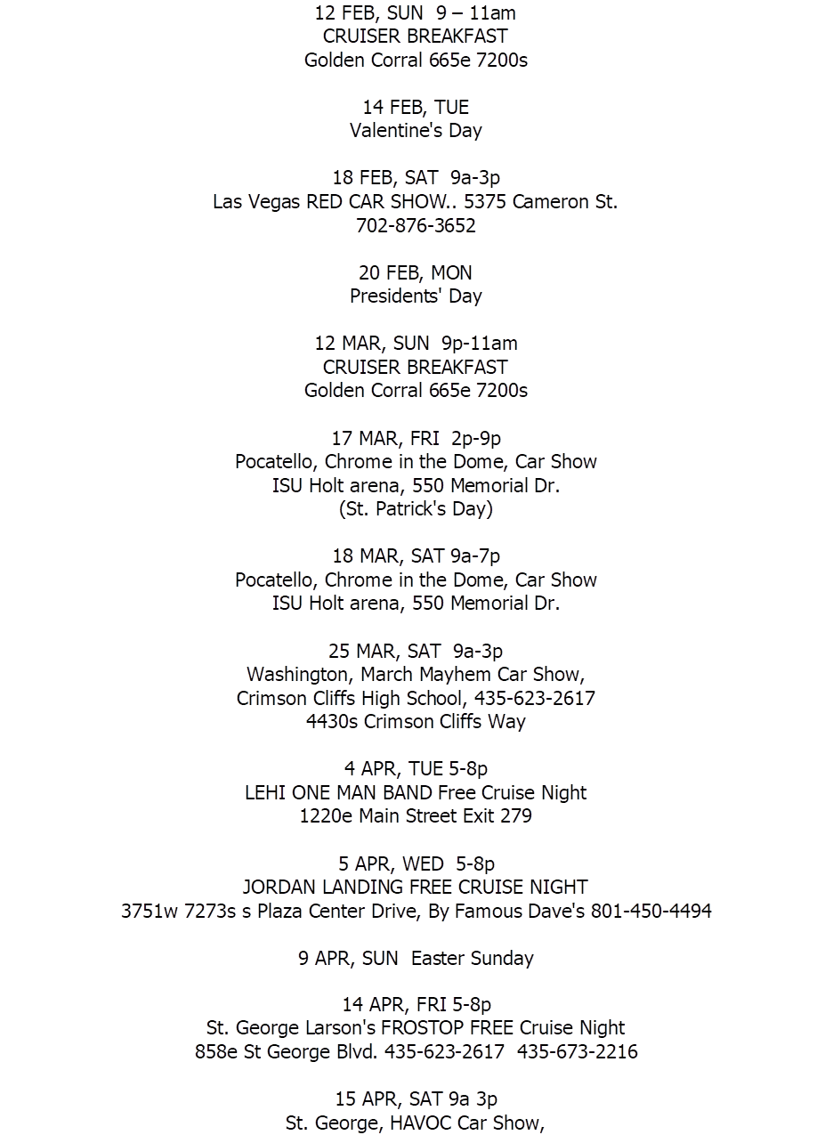 Watch our Facebook for more Information. It is just AMAZING what the School Management comes up with at this show! Hard work and dedication are top priority for these folks. Some may know, Some may not, so Here is a little background information.. On this Fun FAMILY event. I am stunned what they pack into two days,, Friday, Saturday, March 17th & 18th (Never on Sunday) CHROME IN THE DOME ANNUAL CAR SHOW POCATELLO IDAHO, ISU ARENA Chrome in the Dome is organized and performed by students in the ISU Automotive Collision program, Automotive Technology program, and instructors. Experience gained from this event teaches students many organizational and life skills that they will continue to use throughout their careers. Chrome in the Dome is a fundraiser for the SkillsUSA Association. The proceeds are used for scholarships and for students' SkillsUSA Association fees. With the SkillsUSA Association, students will attend competitions at various levels including state and national competitions. These competitions help students to hone their skills and prepare themselves for industry while building their resumes. A unique thing about the show is the trophies that are awarded at the show. Each of the trophies are hand-made by students from ISU Automotive Collision and Automotive Technology programs. Each student designs and builds their own original trophies from used car parts. Students put a lot of time, energy, and creativity into making each of their trophies very unique. Future 2023 Events **** Please do NOT "hit reply" to this email, **** It goes to a mailing service If you would like to email us,, our address is <mailto:jc@jchackett.com> jc@jchackett.com If you know of anyone who would like to receive "Cruise Event Related" information, Simply have them shoot us an email.. They will be added to our mailing list, As you see, it is "blind copied" so others will not get your address.. Please feel free to pass this along to your friends. A Most Important rule to follow.. BE NICE, Think of others, Give someone, ANYONE a SMILE.. You would be so surprised how it will make YOU feel! J.C Hackett Oldies "Rock & Roll Radio" Productions Real Oldies, KCPX Salt Lake City, Utah 84127 www.jchackett.com <http://www.jchackett.com/> Email jc@jchackett.com <mailto:jc@jchackett.com>