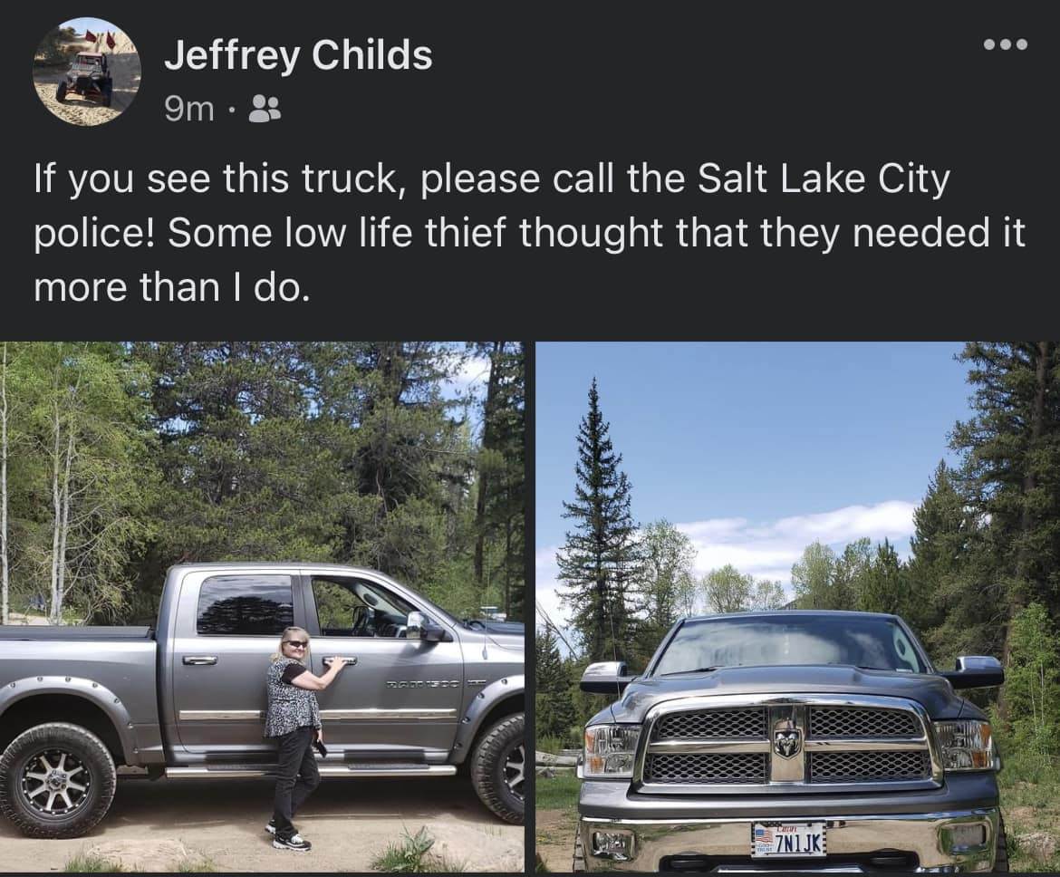 STOLEN-- STOLEN--STOLEN Please keep your eyes open! Let's all help in everyway we can. WE ARE EVERYWHERE. This truck was stolen early Monday Morning.. Sugarhouse area It can be ANYWHERE If seen, Call Salt Lake City Police 801-799-3000 SLCPD Case number .. 23-56133