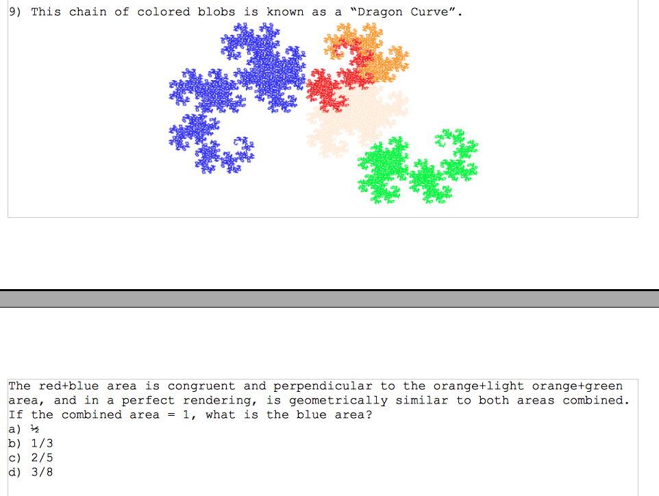 Gosper, I was already familiar with dragons, so I knew that in the tail chains each connected piece has half the area of the next (except for one weird joint in the middle). So I was able to get the right answer (assuming I did). On Sun, Aug 31, 2014 at 4:26 PM, Bill Gosper <billgosper@gmail.com> wrote: