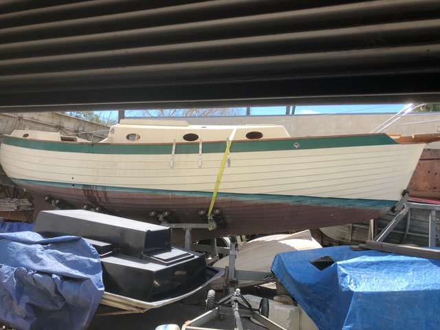 I re gelcoated the entire hull, deck, nonskid above the waterline. Replaced all the teak caprails with new teak. She comes with a used mast. A Yanmar 2GM 20 in a basket, cleaned and ready to assemble. Had 59 hours on it. I think I have the gasket set. Easy to assemble. Have a bunch of stuff for this 1979 Bote. She needs work down below but not that difficult. She has the heavy 3000 pound ballast already. New bowsprit with anchor platform and new stainless bow pulpit. She was a factory complete boat. Bote with extras $7400 Newish trailer $7000 Total $14,400. Contact me via email on the backside. I don’t want to clutter this forum. Or call me 949-307-5699 Cell. Viva Lyle C Hess. Bob Eeg A photo out my shop side door.