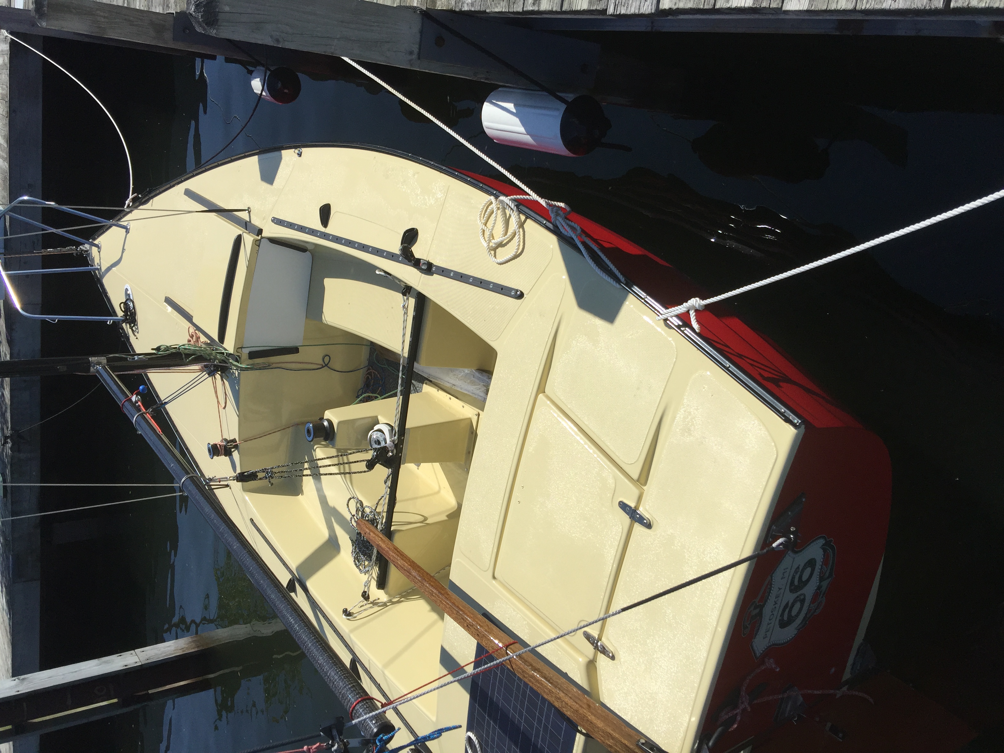 Thanks for the offer, Jerry👍 The cockpit is done, the sail track is in place, the spin pole ring is on the new mast. The old stuff was in pieces and trashed so it was hard to decipher the rig and deck layout. The only thing holding me back now is the newly found stuck centerboard. What goes up won't come down... Got two friends, each with a gantry crane, that I'll put together to lift the boat and see what's what. While your gone to the race I'll post a few pics of the set-up I did for your thoughts. Much appreciated! Good Luck on the cruise Challenge. Tim On Thu, Jul 20, 2017 at 12:16 PM, <jerry@jerrymontgomery.org> wrote: