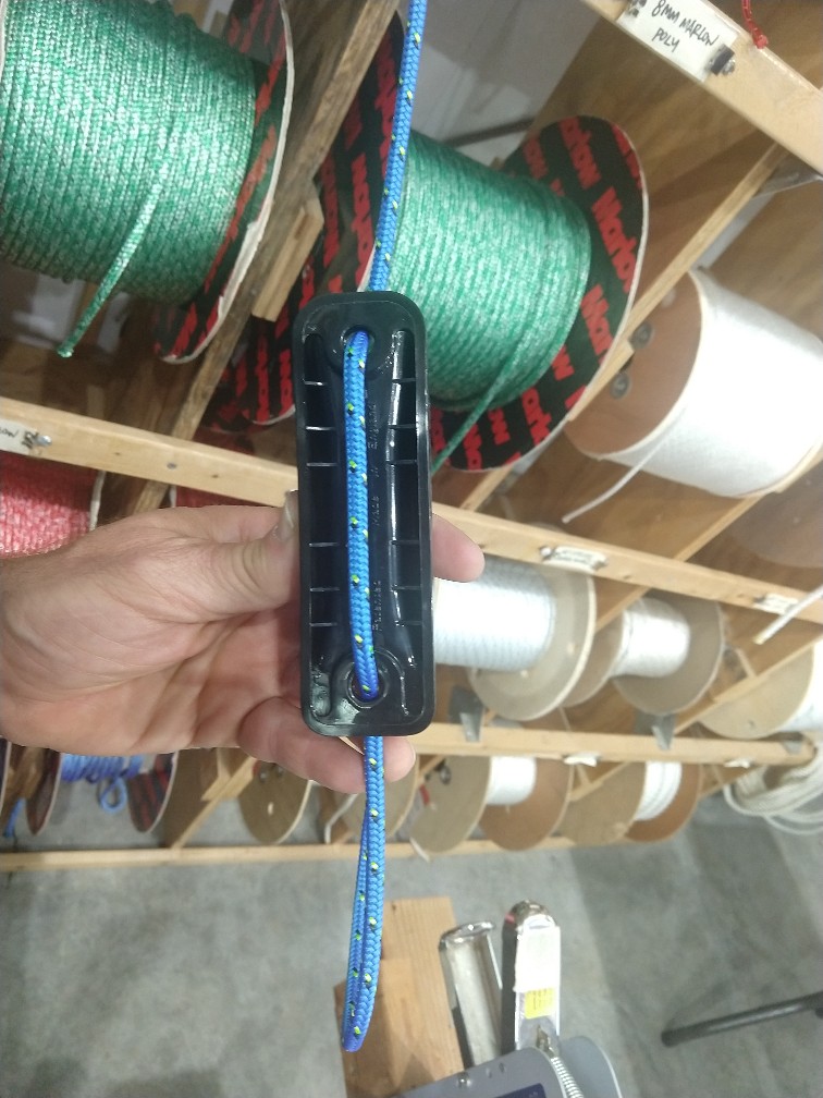 Lawrence: For a topping lift use a 3/16" line that is secured at near the head of the mast. I usually use a strapeye about 6" down the starboard side of the mast. At the lower end use a clamcleat 203 (CL203) where the line runs through the mounting holes (see attached image 'backside cl203') the loops through a strapeye at the aft boom end (some boats have a loop as part of the boom end fitting casting). Now run the line through the CL203's fairlead and adjust the line so boom is at wanted height (see picture attached 'Top fairlead cl203'). Lock line in Clamcleat jaws. Note: CL 203 mounting holes need to be drilled out slightly to fit a 3/16" line. :: Dave Scobie :: M6'8" #650 :: SV SWALLOW - sv-swallow.com :: former owner M17 #375 SWEET PEA - m17-375.com :: former owner M15 #288 SCRED - www.freewebs.com/m15-named-scred/ On Mon, Apr 29, 2019, 2:37 PM Lawrence Winiarski via montgomery_boats < montgomery_boats@mailman.xmission.com> wrote: