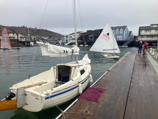 Recently, my 5 year old son and I got to participate in the Sail a small boat day at Richmond Yacht Club (San Francisco Bay). It was really fun, we got to take people from the community on rides all day long and teach them about sailing and sailboats. I can say I was a bit annoyed that almost everyone familiar with boats assumed my M15 was a Potter, even to the point of telling *me* I was confused about what kind of boat I had! We even got to take out two blind sailors, as well as two young kids (age 5-7 ish). One of the blind sailors was actually a Montgomery enthusiast and had owned M boats before! It was raining all day long, but that didn't turn people away at all.