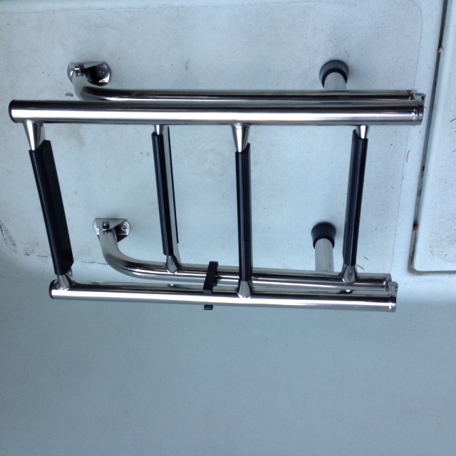 A nice ladder writeup by a "Robert Becker". Apparently he may have sold his boat to Daniel Rich. in his writeup, he gives a part number for a "westline" ladder R-1185.....anyway, I don't know ofa westline, but was it "windline"?