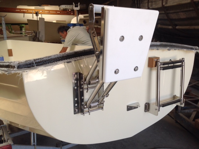 I do have the boat “Kestrel” that I bought from Bob Becker. To be honest, I have not used the boarding ladder once!! Coming over the transom with the rear pulpit would be somewhat gymnastic, so I have entered the boat on occasion over the side without a ladder after jumping out to swim etc. I have never needed to enter the boat from the water in an emergency situation yet, but I think a transom ladder would not be great for that. I have to go out and look at the boat to see the model. Bob did a good job with the installation, and even though there are only 2 fixation points, he has them very securely mounted with large backer boards. I suspect they will hold. I am currently building a SCAMP sailboat, and plan to use the method outlined by Howard Rice to enter the boat over the side using an elevator approach with some fixed line. Getting over the rail of a boat with lots of freeboard is a challenge when in the water. Daniel From: Dave Scobie