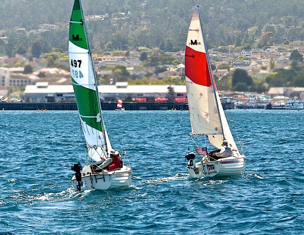I am selling a clean 1992 M_15 that has a newer Pacific Trailer, new sails and newer 3.5 Suzuki. It is the boat on the left in this photo. This boat won the Cruiser Challenge and can be delivered to the Bay Area. Please contact me off list for details. Also have another new M_15 available as well. Thanks Bob 949-489-8227 Sent from my iPad