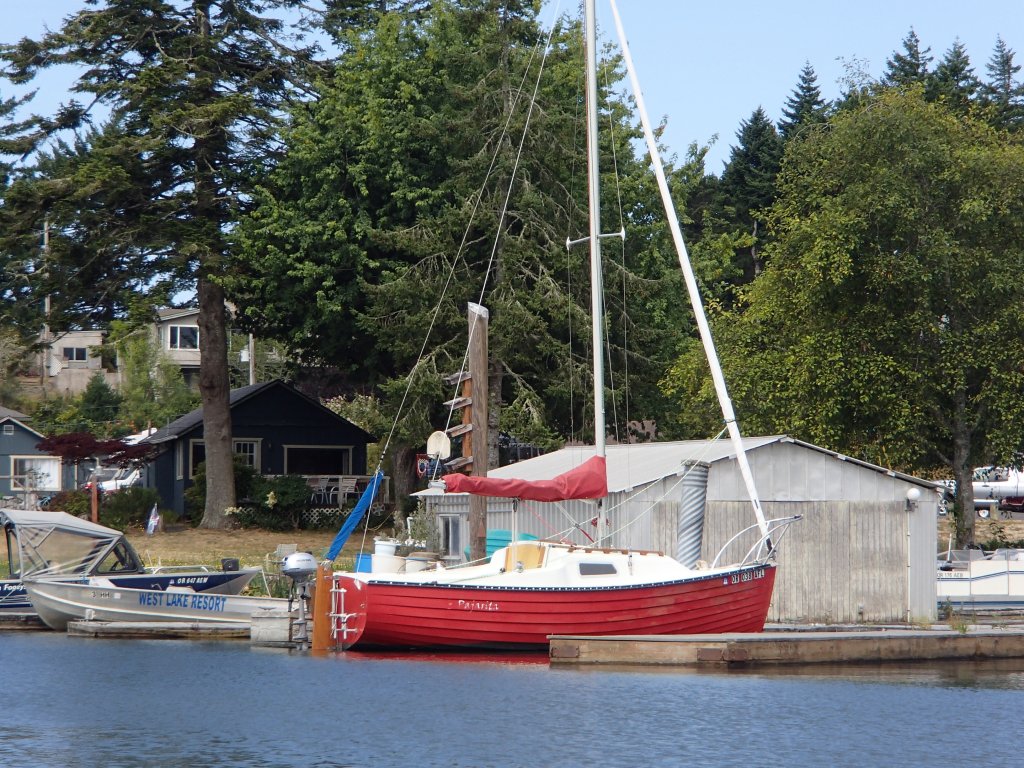 Here's a couple shots of 'Pajarita' at her rustic berth at Westlake resort on Siltcoos lake (different days, different weather).