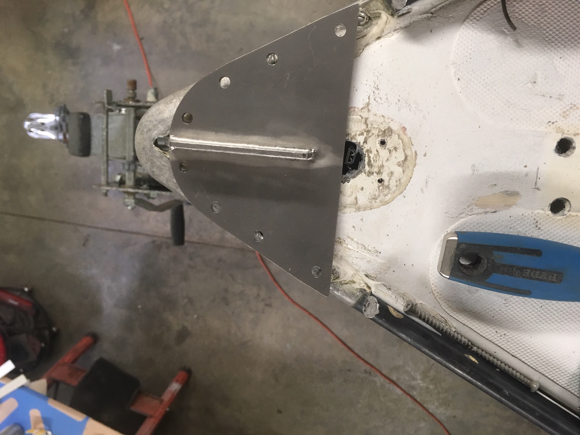 That's what I was hoping to do but after seeing it in place I am re-thinking it. It doesn't look to be a good fit on my bow. After measuring, I see I'd have to pull the back of the plate down 3/4" on each side, and I still couldn't use the front two mounting holes due to where they fall. Photos below. In other photos I see some boats have a different top deck edge; they appear to roll off and cover the top of the hull with a vertical section. My deck has a stepped down flange that sits on the hull flange, and is lower. (If that all makes sense) -Gerry