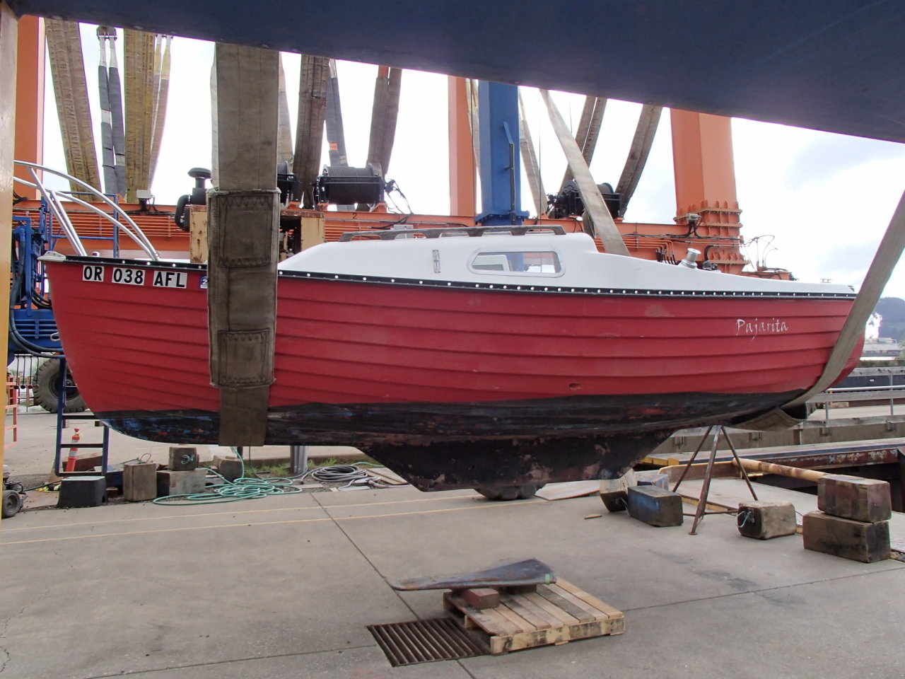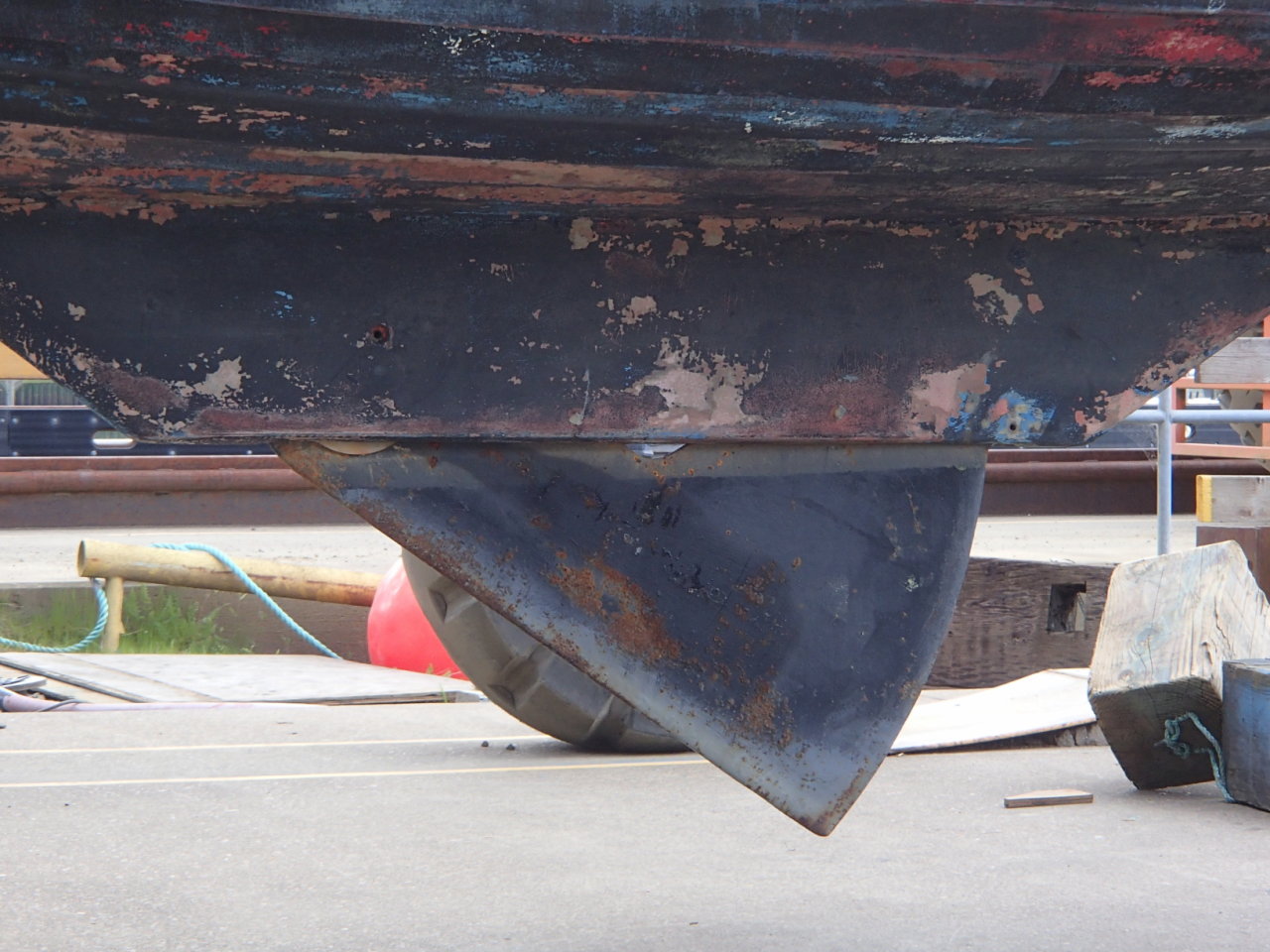 "Pajarita" is at the Toledo (Oregon) shipyard for bottom paint and CB rehab. This morning (with some helicopter parenting on my part) the CB got dropped out. First time I've seen it since I got the boat.