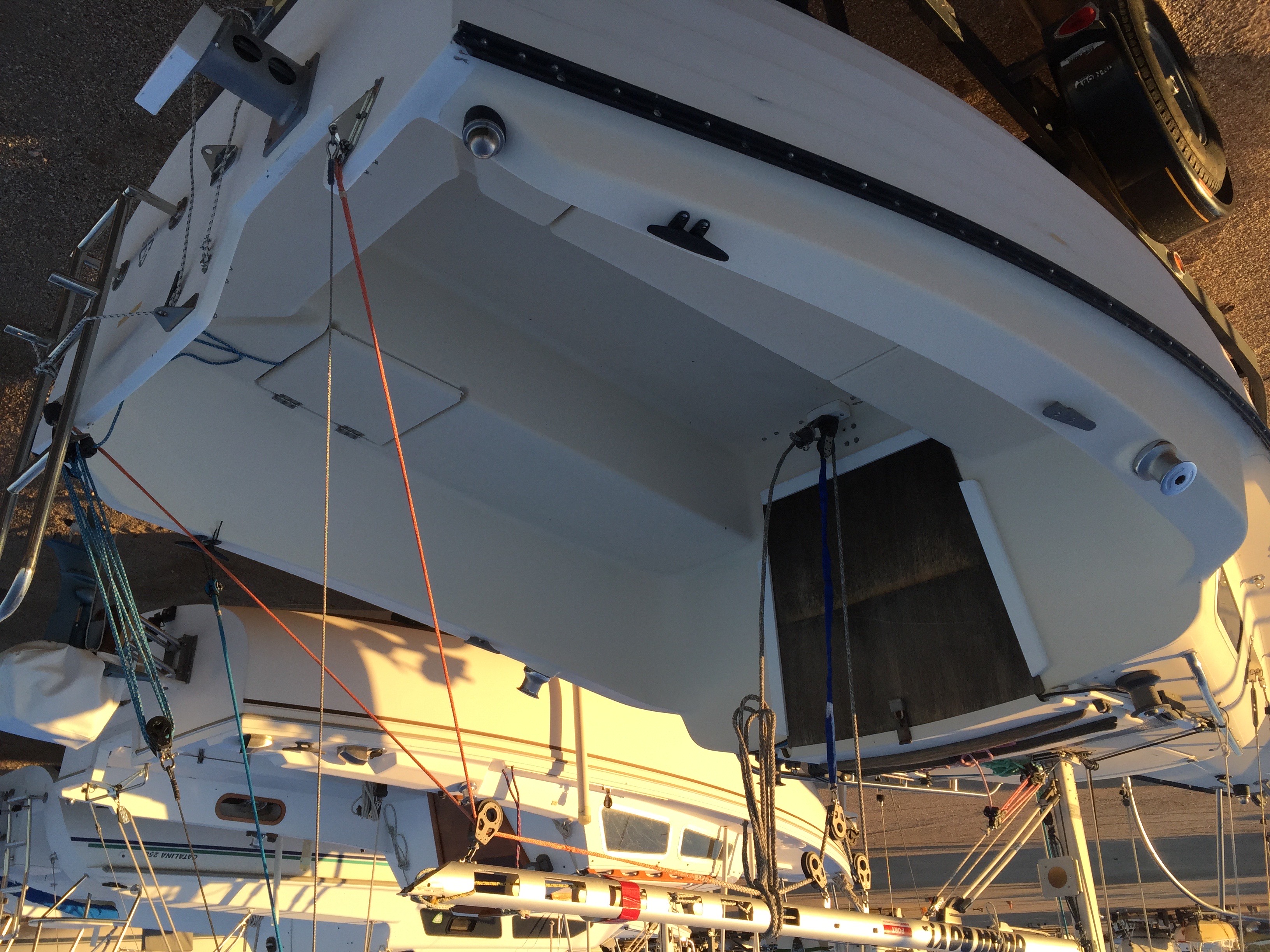 Gary, I'd like to experiment with the split-tail mainsheet idea. My VN23 did not have a traveler; I replaced the inefficient triangular Crosby rig with twin 4 part mainsheets, one from each corner of the transom. Controlwise it was better than using a traveler. Similar to the split-tail but a lot more gear. Do you know the length of each leg coming from the transom? I have a long winter coming up and will have time to splice up some lines. I won't remove the current traveler unless/until I have a season to play with the split-tail and see how I like it. On Thu, Oct 13, 2022, 9:12 PM Gary H.Oberbeck <fairandsquare1@gmail.com> wrote:
