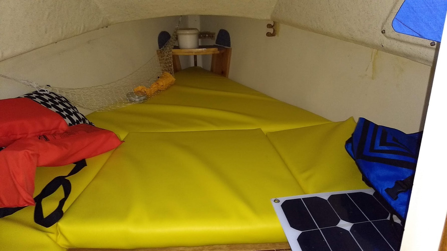 Hi Alex, I have an M15 (built 1984, #272) which gets some water in the bilge. The source was a mystery for a long time, but after some close-quarters cell-phone camera work, I found that there were some openings in the join where the center board rope runs and/or cockpit drain exits. I'm pretty sure now that when water is coming back up through the drain in the cockpit, a tiny amount is also entering the bilge. The rate at which it collects seems to vary, I think depending on sailing conditions. Now that I know about it, I try to check on and remove the water after sailing trips, but I figure that the boat has survived for ~35 years with this situation, it will probably last a few more. The worst I've ever seen it was after a little over a week and quite a few miles in the Gulf Islands. I pulled maybe 3 liters of water out after that trip. Maybe this year I'll try to stuff some plumber's putty in the gaps, but the join is quite irregular and I'm not sure anything will stick or form a decent seal. Here is a photo showing the top of the bilge and the join: image.png And another with the camera a bit lower and closer showing the gap in the join between the cabin and the keel/bilge (top left/port corner). You can see that things got a little hairy with the fiberglass.... image.png Finally, the the bilge where you can see that some of the exposed bits of ballast have rusted a bit: image.png All is not doom and gloom however, I just re-upholstered the cabin cushions and really like how they turned out! image.png Sam On Tue, Apr 16, 2019 at 2:47 PM Paul Baker <avalonjazz@gmail.com <mailto:avalonjazz@gmail.com>> wrote: Interesting Montgomery 15 story totally unrelated to this pivot pin and ballast conversation: At one point in my life a few years ago, I moved to a house where I no longer could keep my 15 on her trailer in the driveway. There was no space. A man I had done some work for had a factory with a huge parking lot in the back, with a gate and security. I called and talked to him, and he kindly let me temporarily store my boat in his lot. I covered her with a plastic tarp in a way that would allow rainwater to roll off. After it was there for about 6 months, and an unusually heavy rainy season, I had an uneasy feeling about my boat, and made a trip to check up on her. The boat had been moved by the man's employees, and my tarp setup was moved in order to roll the trailer to a different spot. It was never put back in place. During all the rain, the tarp laying on the aft end of the boat had formed a waterproof membrane and the cockpit was filled all the way up to about a half inch of spilling through the companionway door. When i saw this, I panicked. I knew that i couldn't pull the plastic up. I knew the only way to empty the cockpit was to slice the plastic and let the water drain into the self bailing cockpit. I couldn't imagine the weight of that water. I climbed up onto the boat to find a place to make a cut. I was so upset, that it hadnt occured to me that the trailer tongue which was up on a block made this a very unstable situation. When I stepped onto the boat, my added weight tipped the scale. The water started to rush aft, and the boat crashed aft end into the parking lot, with an unbelievably powerful force. The boat was bow up at a huge angle, which frightened the heck out of me to see. I had fallen down into the water as well. I got up, got out of the boat and somehow got her back down again. I think I may have just moved forward, I'm not sure anymore because I was so upset. I had just assumed that my prized boat that I took such good care of was going to be smashed, a total loss. I felt devastated. I was on the ground, and walked aft to see the trajedy. Here's the happy ending: Not only was she in one piece, there was not the slightest crack, chip in the gelcoat. Nothing. I kept running my hand on the point of impact. Not the slightest damage could I detect. It landed right on the tip of the aft part of the keel, so I assumed it would be less stout than other parts of the hull. I was wrong. I realized at that moment how strong this boat actually is.The other huge gift from above: not one drop of water ever went below, which would have been a disaster. Now I keep her in the driveway of my current home, under a covered frame, so I don't have to worry again. *Miracles DO happen.* On Tue, Apr 16, 2019, 1:56 PM Alex Conley <conley.alex@gmail.com <mailto:conley.alex@gmail.com>> wrote: > Thanks Jerry- knowing the hump is separate from the keel cavity eliminates > all my worries. Other than sealing a few spider web cracks in the gelcoat > around the pivot pin, I think I'm good to go sailing! > > And Burton, unless I see new water, I'm going to assume the water was from > overzealous spraying as the previous owners grand kids prepared the boat > for sale. Why worry now when you can worry later? Overall amazed at what > good condition this boat is in for 32 years old. > > Now on to more important things, like buying a hiking stick so I can slide > around to keep the boat trimmed to 55% aft- Jerry, your mini-lessons in > naval architecture and how these boats were constructed is invaluable! > > Alex > > On Tue, Apr 16, 2019 at 10:48 AM <jerry@jerrymontgomery.org <mailto:jerry@jerrymontgomery.org>> wrote: > > > The "lump" under the fwd berth is trim ballast and not part of the keel > > ballast, and is put in place and glassed over AFTER the keel ballast is > > installed and glassed over, and is in front of the keel ballast anyway. > > it's well forward because it's for the sake of trim to compensate for > > weight > > in the cockpit. > > > > A problem with small cruisers is that the cockpit is in the back of the > > boat, and the more weight in the cockpit the more the boat trims aft, > > which > > slows it down for a couple of obvious reasons. Sailing dinghies don't > > have > > this problem because the skipper and crew sit in the center of the boat, > > wherever they need to be to tr