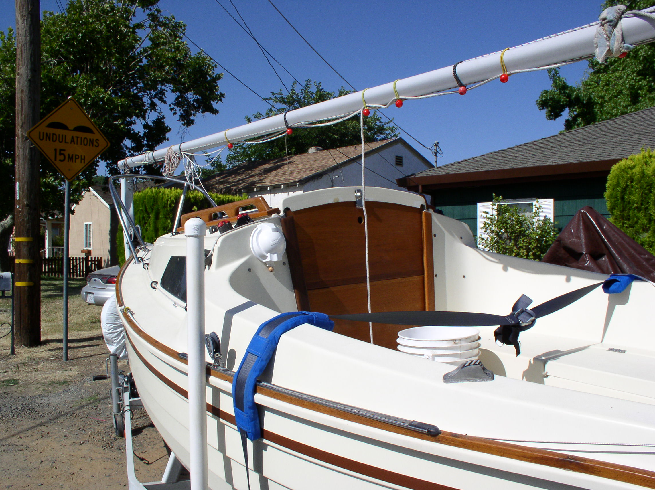 Ian, here are some photos of my M-15 that is now for sale. The price is $3400. Spare tire never used. Rudder was refinished to like new condition with protective cover. Comes with anchor, never used by myself. Thedford 135 Porta Potty never used. Recent Fire Extinguisher at full pressure. Price includes near new, 5 hour Nissan 3.5 hp four stroke outboard aux power w/ long shaft. Has forward and neutral. This engine is spun around 180 degrees to achieve reverse direction when at dock. --- Larry Hughston home: 916 922-0526 at work: 916 922-375-4217 or email me. (Cash only please) -----Original Message----- From: montgomery_boats [mailto:montgomery_boats-bounces@mailman.xmission.com] On Behalf Of Ian Black Sent: Wednesday, June 04, 2014 8:50 AM To: For and about Montgomery Sailboats Subject: Re: M_Boats: M-15 For Sale in Sacramento The big question is how much? Pictures would be nice and the year it was built. Thanks, Ian -----Original Message----- From: Hughston, Larry@DGS Sent: Tuesday, June 03, 2014 9:34 AM To: montgomery_boats@mailman.xmission.com Subject: M_Boats: M-15 For Sale in Sacramento Hi M-Boaters. I am selling my M-15 with trailer and low hour Nissan 3.5 hp outboard. Boat and trailer in very good condition. Will send images if requested. Sails are good, Main is fair. Lots of cosmetic work done to bring her back. Email me at lahughston@att.net<mailto:lahughston@att.net> at home. --- Larry Hughston (Hi Jerry M. Met you at Beals Point, Folsom Lake several years ago. I called you "Master", I was serious ! ....and thank you for your great boat designs with "wrinkles". Thanks again Jerry.) --- LH
