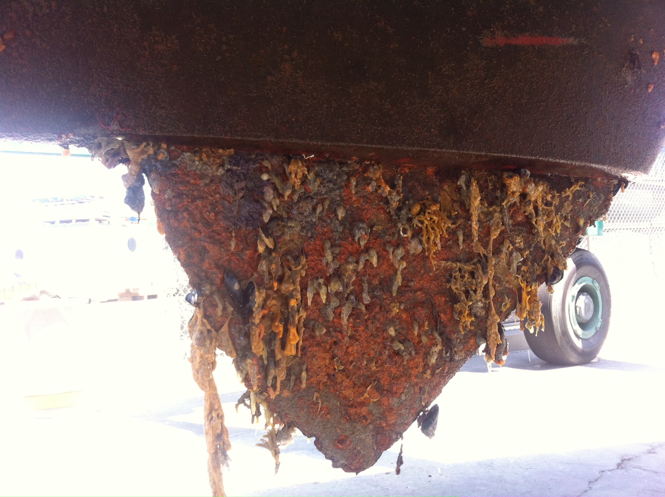 Hi Todd, boy that is one complete marine eco system that was on the CB! When you first said that it would not go up I was thinking bad things about the center board trunk/keel but then looking at the board I do not wonder that it would not budge. Mine would not move just because of all the rust on it making it tight in the CB trunk. Yours had more rust and a whole bio system! I did the sand blast (soda blast actually) barrier coat, fairing and bottom paint process on my center board myself. I would not recommend messing around with that 300+lb board to anyone so it is money well spent having the yard take care of it. Great looking boat! Please keep us updated on your projects. Robbin M-10, M-23 On 6/18/2013 6:17 PM, Todd Bradley wrote: