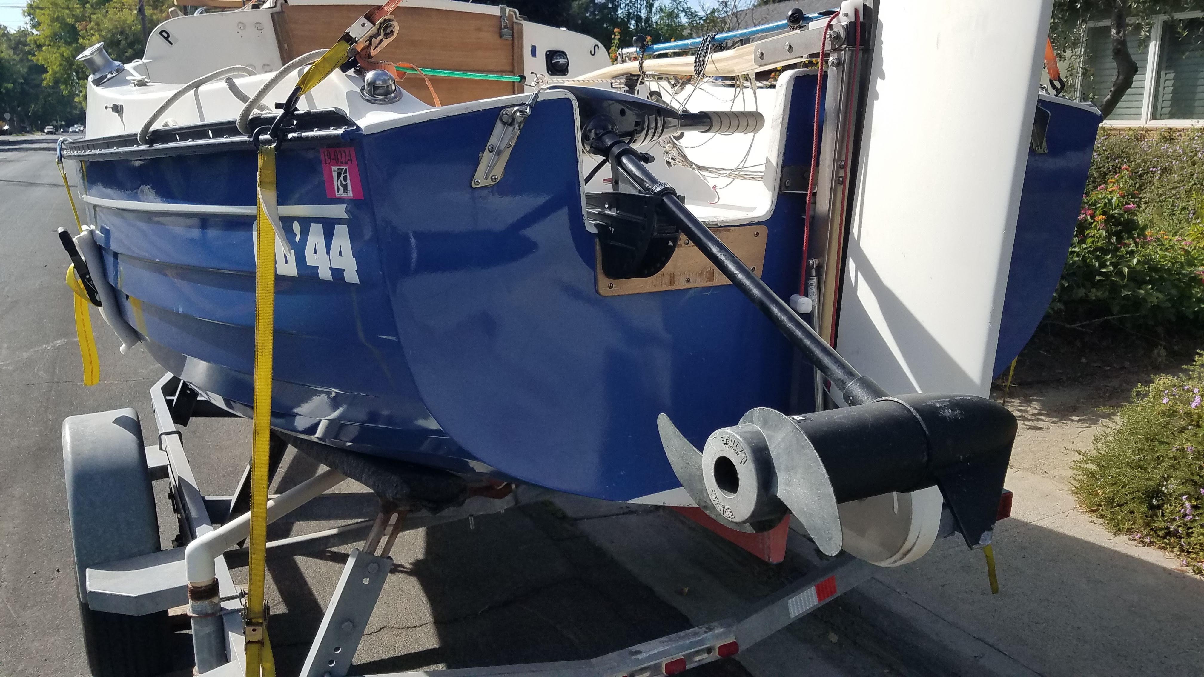 My Monty 17, #44 was equipped with the 2 pintle gudgeon set up, making approaches to shore and shallow water very interesting. When the rudder hits bottom, your first reaction is to go to the transom, putting extra weight on the stuck rudder. You can try to pull the pins and unship the whole affair or jump into the water and deal with the predicament you now find yourself in. A ruddercraft rudder/ mast raising system became available at a reasonable price and resides on my transom permanently. No more shipping and unshipping at every launch/retrival. No more looking for somewhere to put the 6' mahogany plank in my truck. Life got easier. Anything you eliminate at launch/retrival gets you in the water and sailing sooner and with less effort. I'm there to sail, not mess around with gear. How many flush deck 17's were built. I found the sales brochure on Shorty Pen and fell in love all over again. What a beautiful boat! Jon Barber Monty 17 Ol'44