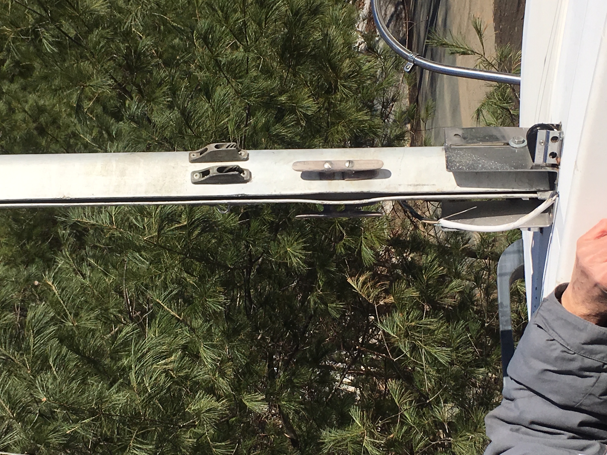 Looking at the original mast, someone mounted strap eyes on the port side and jam cleats on the starboard side. Any idea what these might have been used for? I have not mounted any on the new mast yet. There are permanently mounted blocks on the deck to redirect the halyards to the cabin top near the companionway. -Gerry