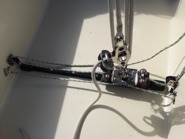 Thanks, that's helpful to see. Mine has the traveler blocks as units that integrate with the end of the track. So they take up a bit more horizontal space than your setup, probably. You get a wee bit more travel than I would in the same width. But for me, no need for hardware mounted to the footwell walls. cheers, John S. On 11/19/2015 07:13 PM, Bill Wickett wrote: