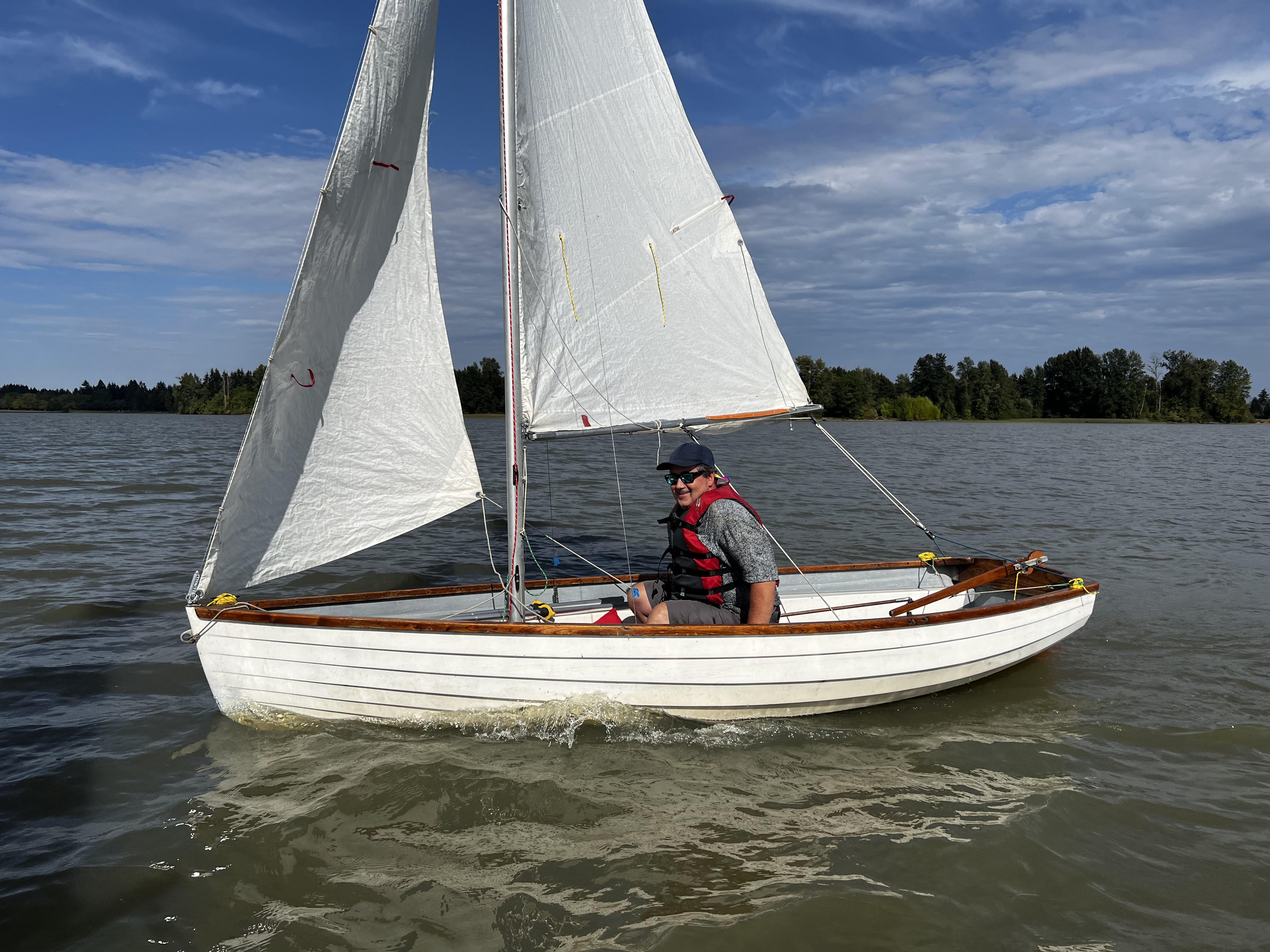 Yes, that's the one and you're right it's Fern Ridge. Mr Montgomery graciously provided a mast step and advice and with some fiberglass work it's back among the living. It's a fun little boat with lots of sail area and it scoots right along. I'm still changing stuff. I'm not a racer and It's probably blasphemy but sewed in put a reef point in the main sail using sailrite parts and I might even add another. It's got plenty of sail area for a little boat I tipped it over at the dock...(on purpose....sort of) while testing to if I could get back in. It was a little bit of a struggle and I had to take the rudder off and come in over the stern and busted my windex in the process. It has a 2 part aluminium mast and I was thinking about making the top section sealed so it has some flotation and won't turn turtle as easy. Also when righting it I had to pull pretty hard on the centerboard and worried about breaking it......I wonder if It would be worth it to make an Aluminum one a little heavier...maybe a little Lead even.......Mr Montgomery...forgive me :-) All in all it's a pretty sporty little boat. On Thursday, September 26, 2024, 11:30:26 PM PDT, John Schinnerer via montgomery_boats <montgomery_boats@mailman.xmission.com> wrote: Hey Larry, Cool! Looks like a nice ride... :-) That's the one several of us hereabouts (Oregon) had heard about and you ended up buying, right? And fixed it up etc.? Is that Fern Ridge I assume? cheers, John On 9/26/24 23:26, Lawrence Winiarski via montgomery_boats wrote: