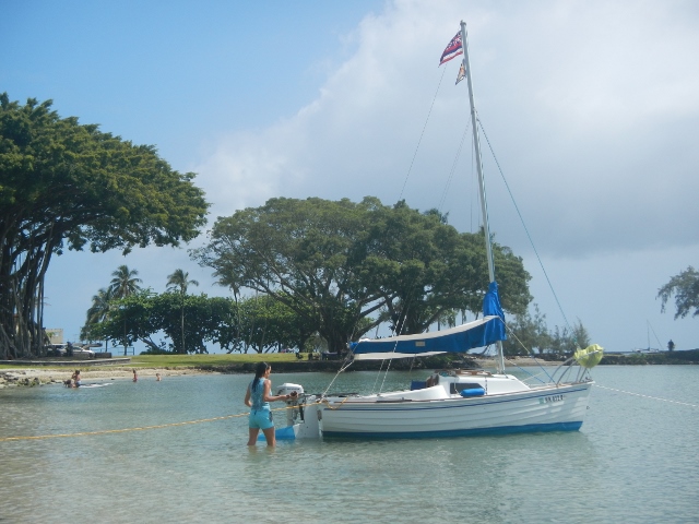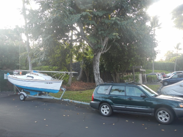 We pull her all around Big Island to go sailing where good sailing conditions are enjoyable. She doesn't need permanent/temporary mooring, insurance fees, or Official Boating Safety Education Course. No need to worries with hurricanes or tsunamis as well.