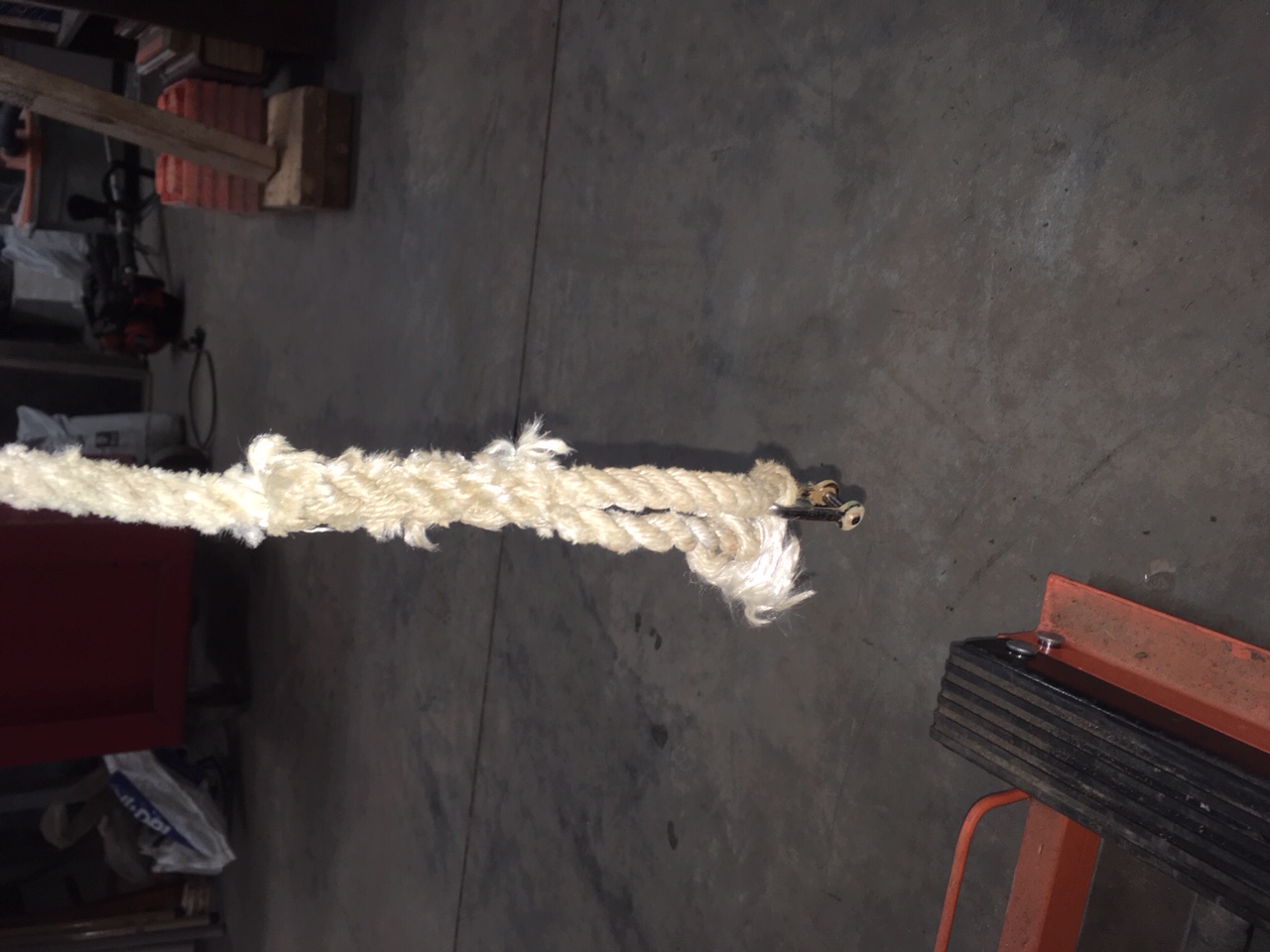 So we got our new to us M17 off the trailer, on to stands, and removed the centerboard. One problem we ran into was the centerboard wanted to drop right away. At first I thought the line was broke, but pulling with the winch showed me it wasn't. It appears that this splice is too long (about 8") so it binds up at the top before the centerboard is up fully. What is the normal connection there?