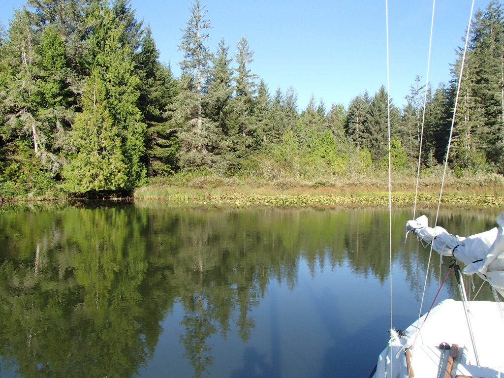 Forgot this part - here's a few more pix, we did one overnight, down to Harmony Bay at the SW end of the lake. Lovely quiet spot, you pass a few summer cottages going down the arm to near the end but there's this little side bay to anchor in out of sight of those. The lake is fairly shallow & mild water temps, that morning we took a swim before heading back (had to motor back as it was the usual calm morning conditions). Luckily Brandon at the marina had previously told me about the long row of pilings hidden mostly just a few inches below water surface down the middle of the approach to this arm. Used to be a logging town at that end of the lake (early 1900s) and these were the remains of log handling piers & pilings. A few poke just above the water, but one of the few other marina guests, a retired local, told me how he didn't know about them first time down there and just about broke his motor off the mount when he hit one motoring in. cheers, John -- John Schinnerer - M.A., Whole Systems Design -------------------------------------------- - Eco-Living - Whole Systems Design Services People - Place - Learning - Integration john@eco-living.net - 510.982.1334 http://eco-living.net http://sociocracyconsulting.com