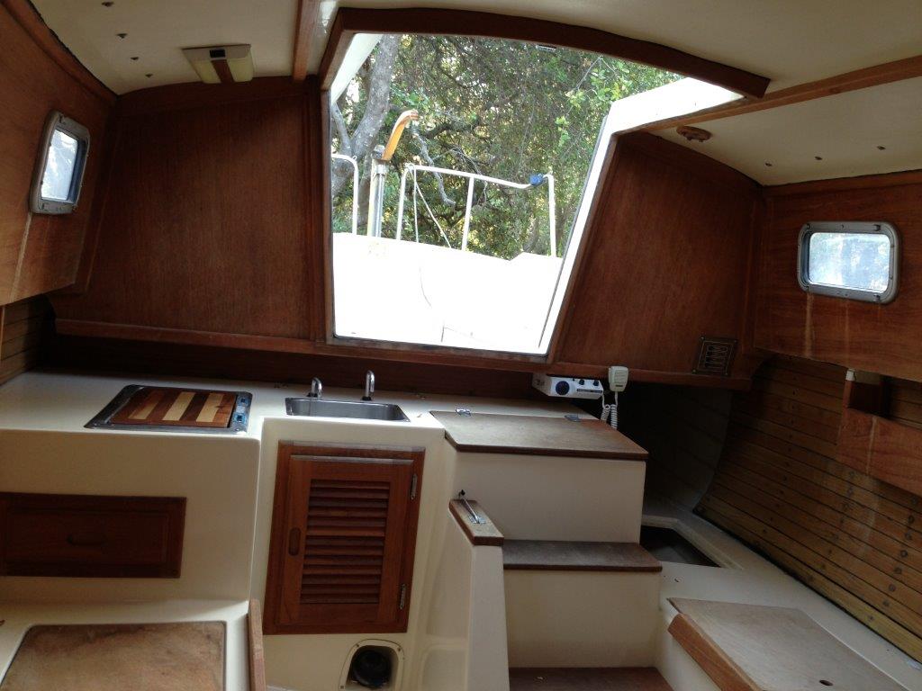 I spent the weekend removing all loose items from the cabin so I could have a good clean in there. There were small mildew spots on the cabin top fiberglass headliner and other surfaces. So I mixed bleach & detergent concoction I got out of Don Casey's book and wiped down the whole inside. Smell a lot better in there now! See attached pictures.