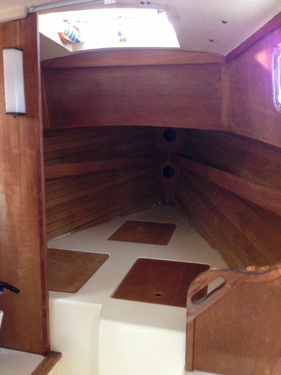 Sean - looks like you have a really cool portside 1/4 berth extension. I bet that gives you some much needed shoulder room when sleeping there? I can see in your photos where you have the teak cushion stop in two pieces and can have the doweled so it can be used with the original size cushion or you can add your added cushion piece extending the 1/4 berth a bit. Looks like about 4" or so? How do you support the whole thing when extended? Do you have some flat supports you extend under the cushions? I also see a cleat attached to the bulkhead. Do you have any pictures of the set up you can share? Do you like and use the extension?