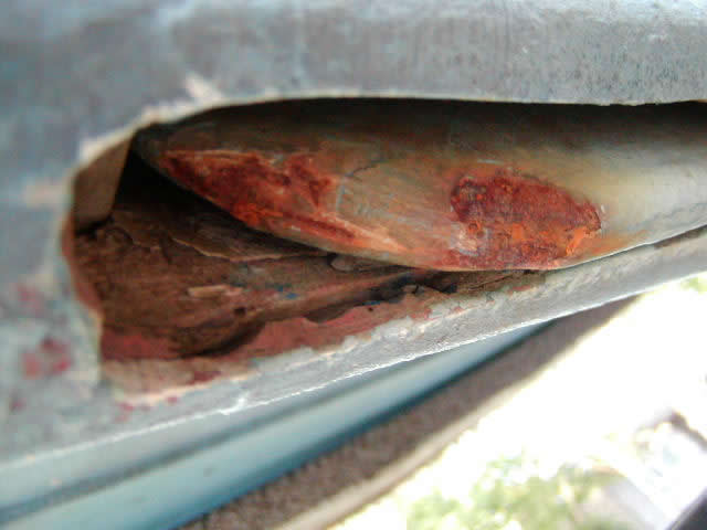 To aid in the discussion, two pics are submitted. The rust blob is on the tip of the CB...the lowest point....took a grounding last year at the 2001 CBR, which scuffed off the elaborate paint job I had put on it. Everything else has held well. So I guess I get to do it again. The pics are looking up into the CB trunk from below, and show how the interior of the trunk liner is separating at the bottom of the CB trunk. CB still goes up and down easily. So....where does one go from here? Howard On 9/16/02 9:50 PM, "Jerry Montgomery" <jmbn@innercite.com> wrote: