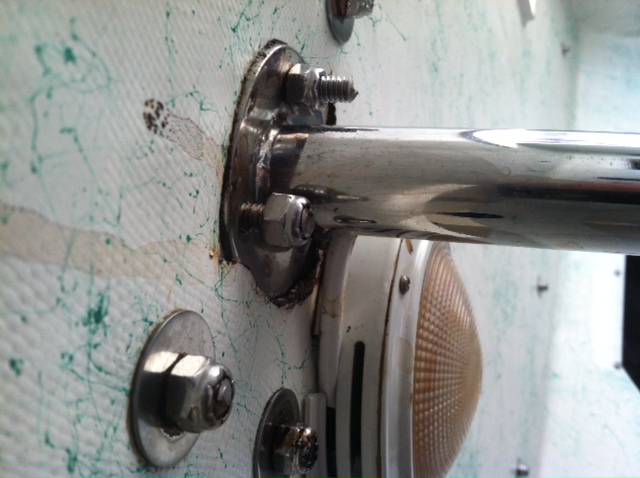 Rick, when I got my boat last year, I had a lot of water coming in the same spot, where the electric wires came through. Figuring this will always be a problem because when you pull on the wires that are caulked in it will create leaks. So I closed the hole and ran my electric and coaxial wires out the front of the mast and into mounted sockets. Pictures attached.