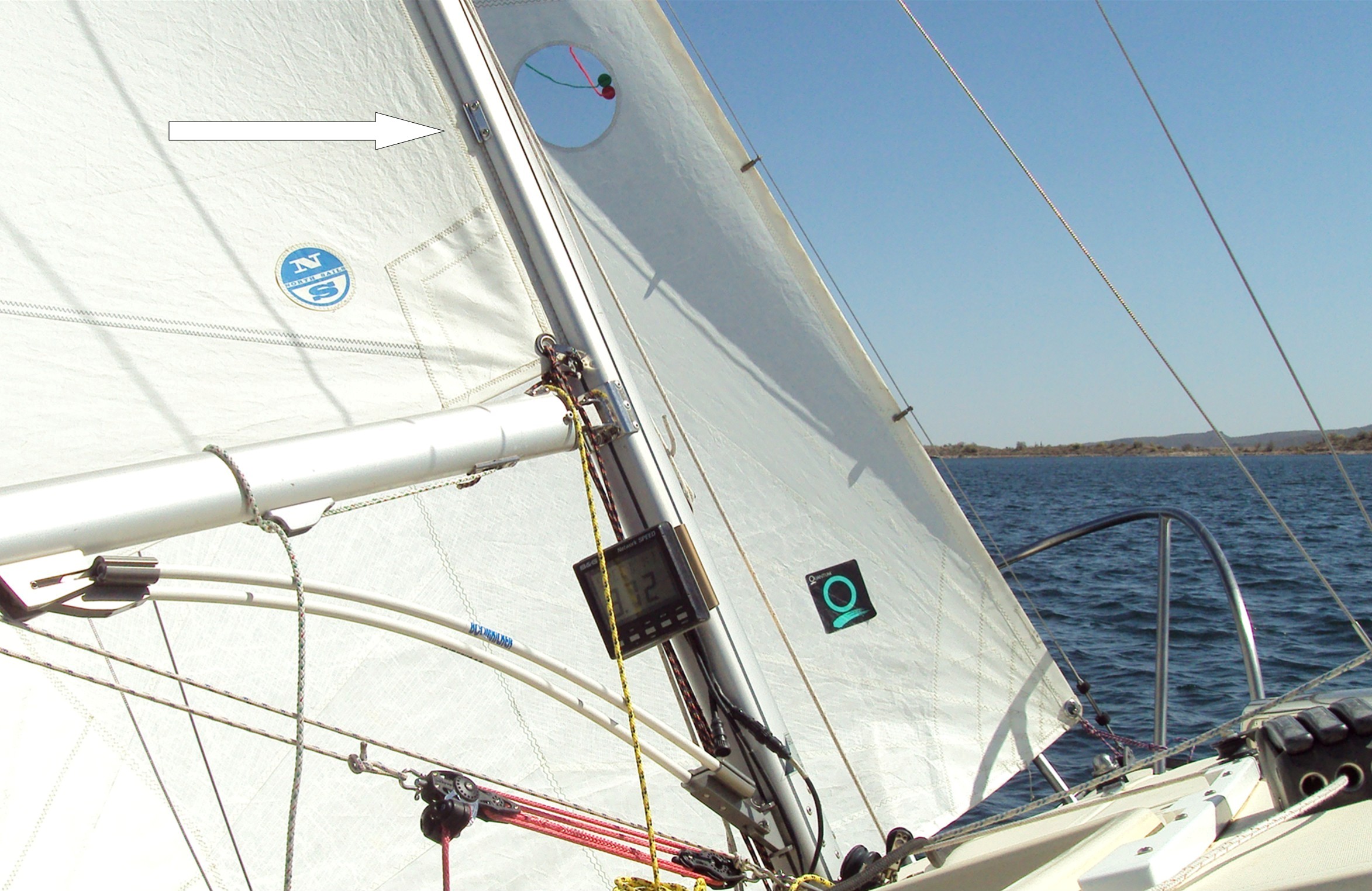 Just for the sake of - the other opinion- I have installed hundreds of slugs in mainsails (you can do it yourself on boats this size) when I was selling boats. Not hard job - great for the boatyard/parts store or sailmaker and more appropriate for large sails IMO. If you have a well designed feeder at the throat of the mast the boltrope should feed into it with no problems, (mine has not caused a problem in approximately the 7 years it has been on the rig) the feeder came on new mast from Ballenger Spars. Pros for slugs: Easier to flake sail onto boom. Sometimes - less friction when hoisting and lowering - IF all goes well. There may be other benefits - I don't see them at the moment. I am stubborn. Cons for slugs: sail is supported at slugs only - this can cause a problem when: slug fails and adjacent ones are overloaded. reefing and the slugs become overloaded or break - see above. Slugs bind or are inserted 'upside down' Metal shackles and metal bails on slugs - (less prone to breaking) - can damage mast and anodizing. More weight aloft. Less efficient aero attachment at the mast. Attached is photo showing mainsail feeder - enlarge to 100% for clear view of feeder- ( current sail has a floating tack and the tack and cunningham cringles are tied in and against the mast as they float up and down) - I roll my sails, so flaking is not a concern for the boat. The sail is attached along the whole luff and thus the load is spread move evenly with a boltrope. BTW -your headboard should have slug (or two- in the case of larger headboard) attached with webbing when installing the slugs - this prevents -you guessed-it , the upper slug/shackle/grommet from being overloaded at the leech as experienced during reefing conditions. Biggest Cluster That is a different opinion and worth every penny of the price paid -mileage may vary, always wear safety glasses, this is an exhibition - NOT a competition -Please - No Wagering! Remember -any one with an Internet connection can be an Expert when delivering information thru the 'ether' - If you have read this far, you have been witness to the phenomenon. go