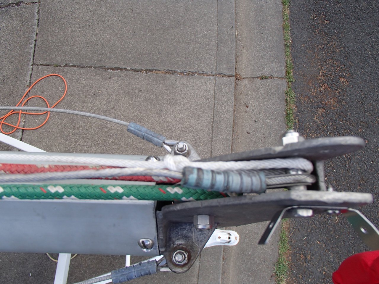 Actually I found I had a couple pics of my masthead from back before I redid the standing rigging (this shows the nicopress at masthead that it came with).