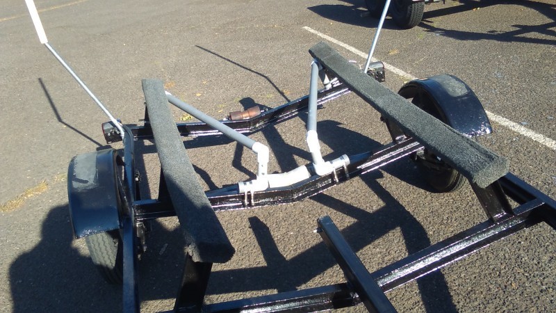 Here is a picture of my Keel guides. Held to the frame with stainless steel hose clamps from Home Depot. Also are 2 bent piece of 3/4 conduit about 4 feet high that guides the boat in. If I did it again, I'd use 1" conduit. I also have on the post an eye that I use with a 50' 1/8 line, that I use so that when I'm on the dock, I just pull the line so that itthreads the boat onto the trailer from a respectable distance.