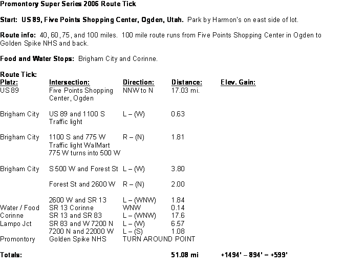 Due to a moving construction zone in Brigham City, the route had to be changed. Also, this ride will have one SAG support vehicle for riders going a distance of 80+ miles. The SAG wagon will be at Lampo Junction. See you on the road. TCoffey