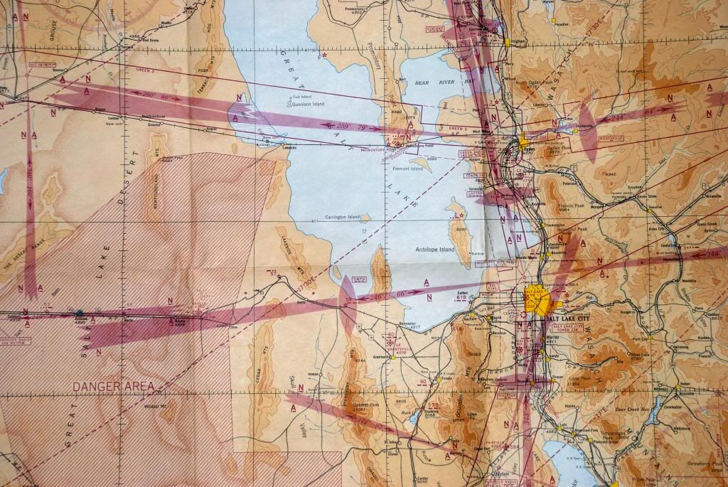 There is an aviation arrow for the SLC to San Francisco route on top of the hill just north of exit 62 on I-80.