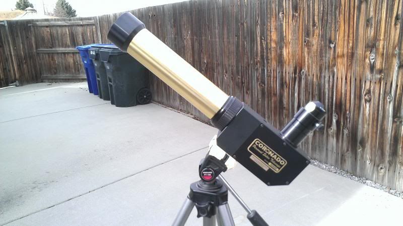 Here's the stock PST, on a tripod. Good for low-power, quick views only. For higher-power viewing, I mount it on one of two GEMs, or an Orion Teletrack mount.